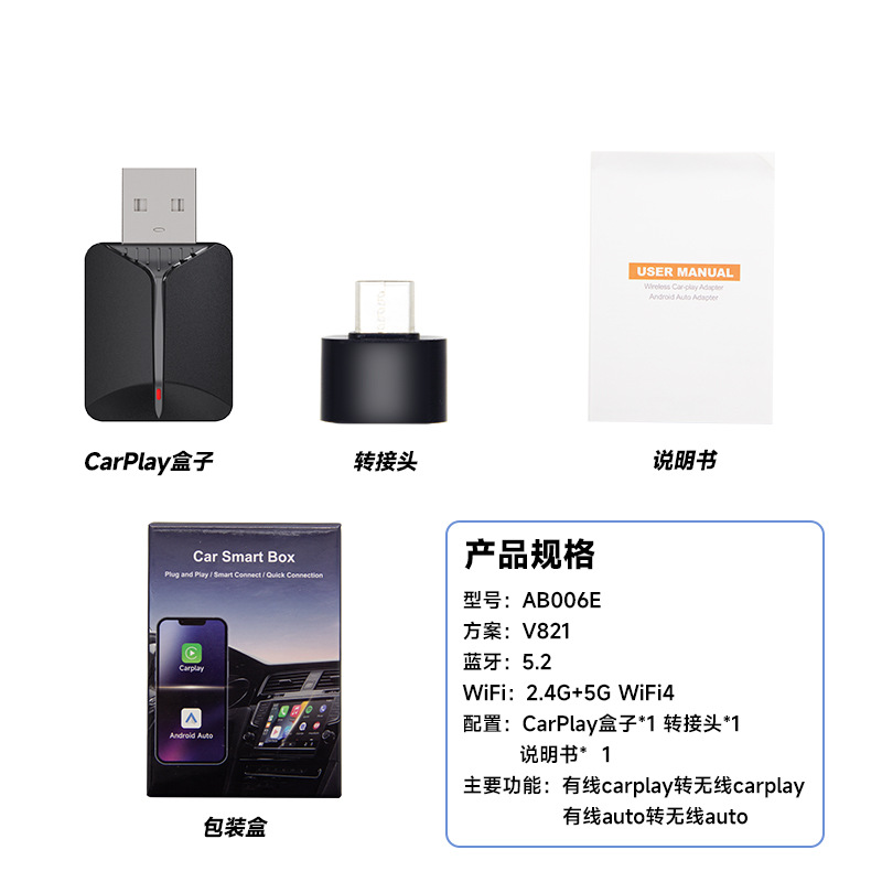 2025 новый Apple Carplay Коробка для всех моделей проводной в беспроводной разъем carplay