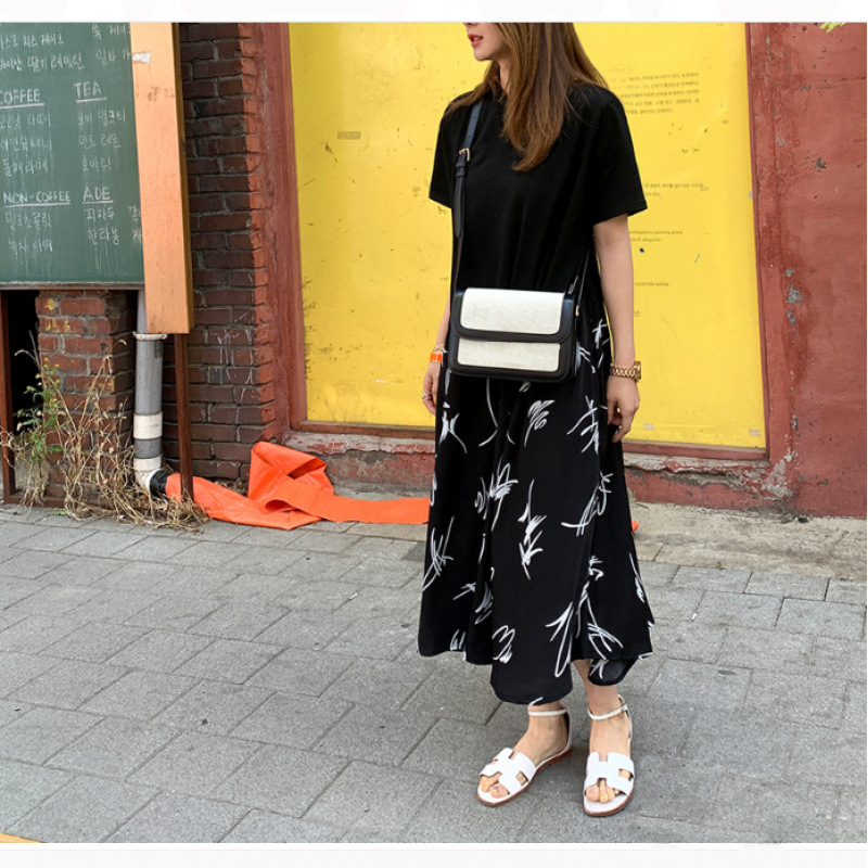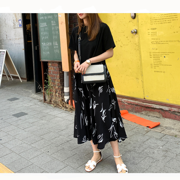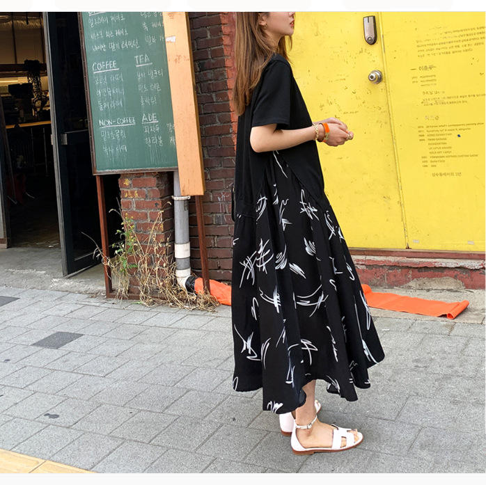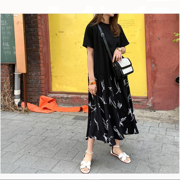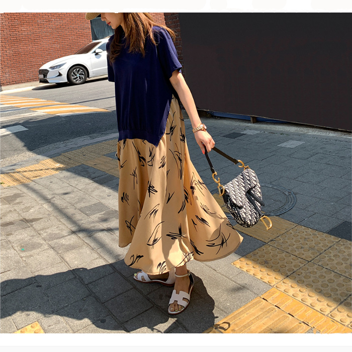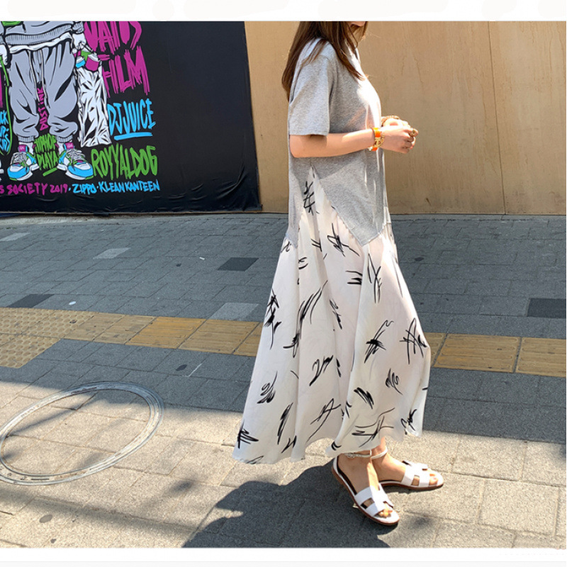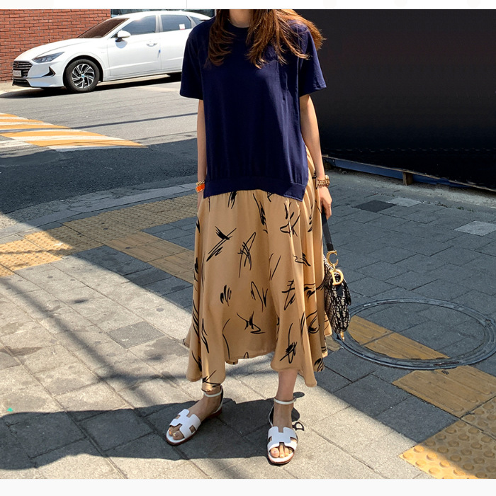 Европейская и американская внешняя торговля сума женская толстая миллиметровая свободная тонкая рубашка с принтом платье поддельные две длинные юбки DRESS