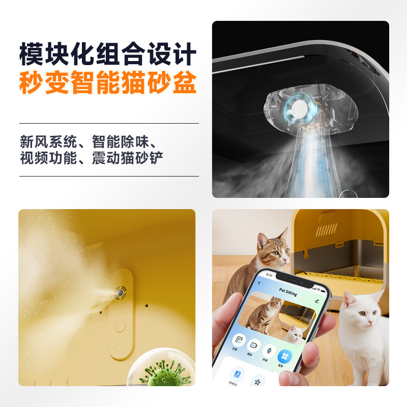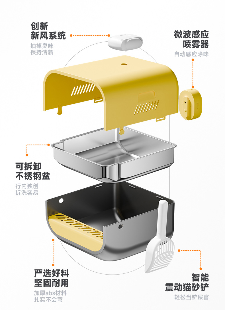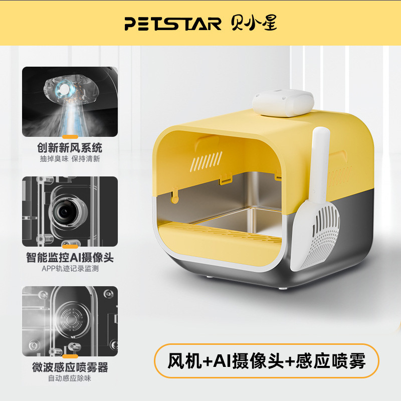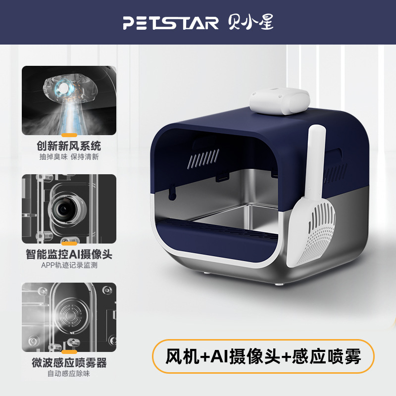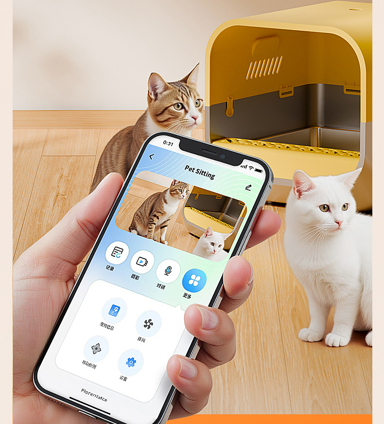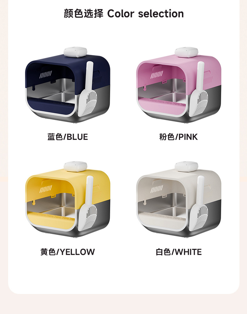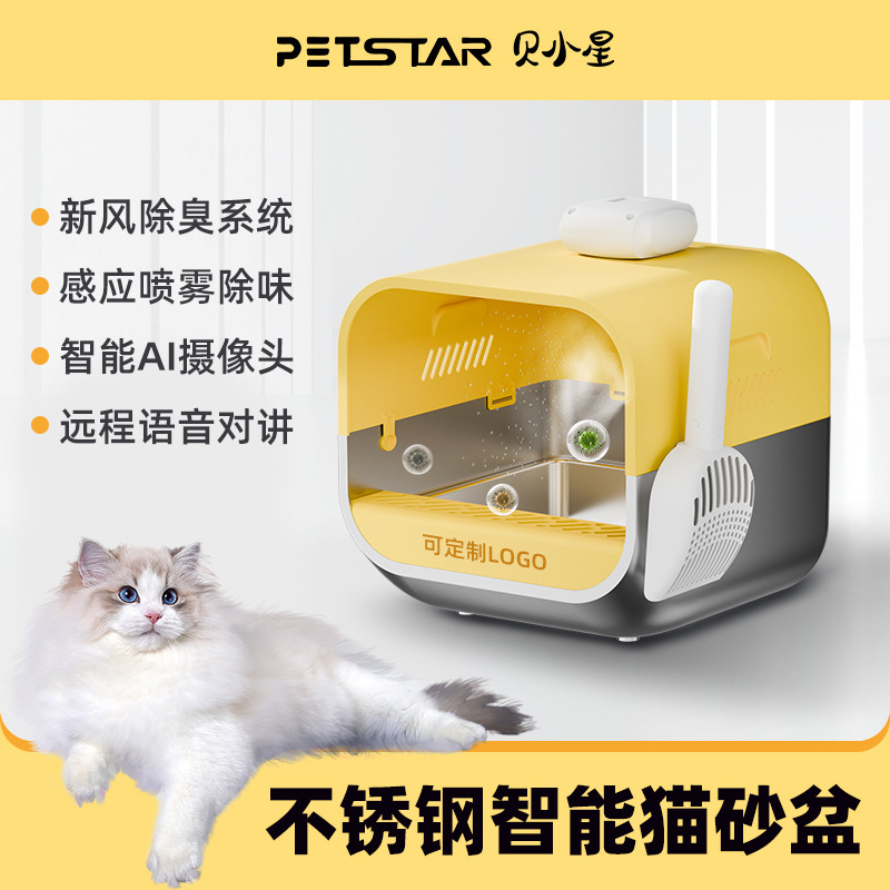 Ящик для кошачьего туалета из нержавеющей стали, большой дезодорирующий спрей для свежего воздуха, защита от брызг, антипригарное дно, видеодомофон, умный кошачий туалет