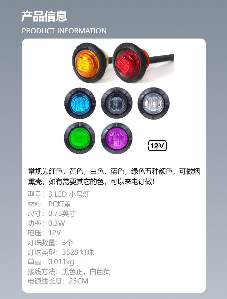 厂家直供1led3LED 3/4英寸卡车边灯12v24v货车边灯挂车信号灯货车