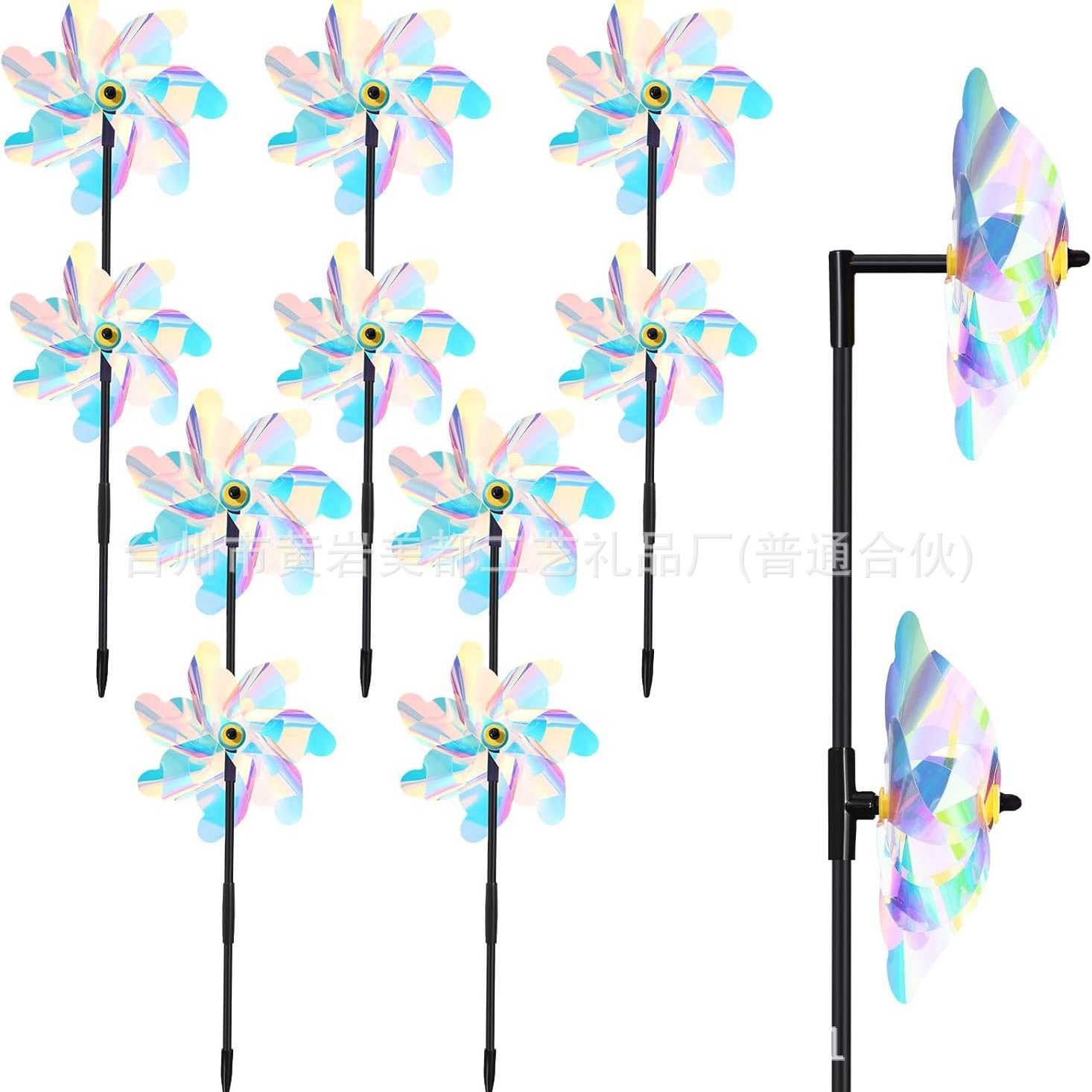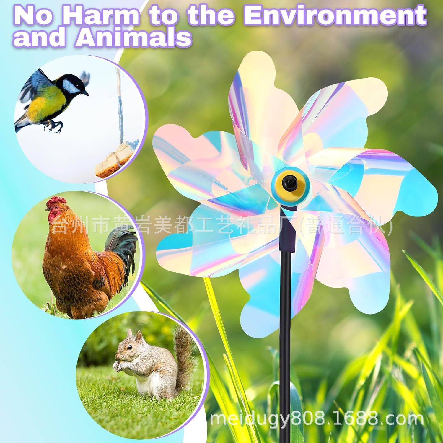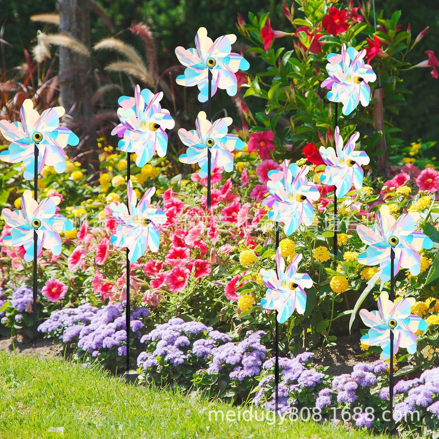 Трансграничная ветряная мельница из ПЭТ-пленки с колышками, двухслойная блестящая ветряная мельница, отпугивающая птиц, подходит для украшения сада.