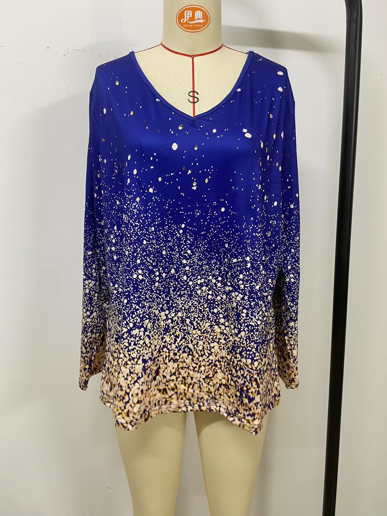Amazon Independent Station 2025 летние женские топы с длинными рукавами, однотонная градиентная печать, европейская и американская трансграничная внешняя торговля, женская одежда