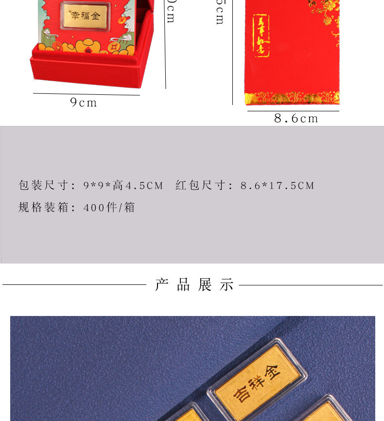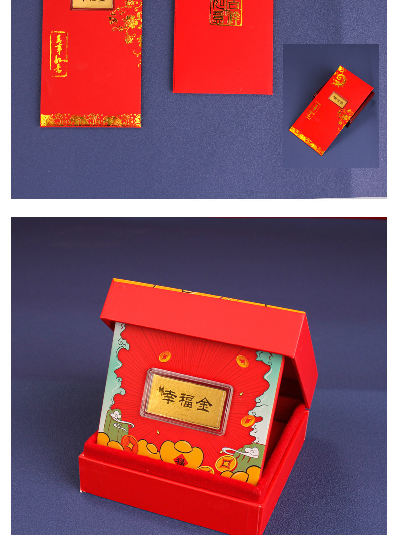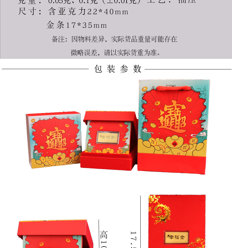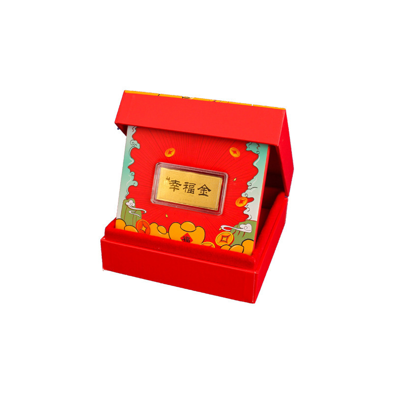 0,05 г чистого золота 999 пробы, банкнота из золота 0,1 г, маленький золотой слиток, красный конверт, креативная подарочная коробка, новогодний деловой подарок