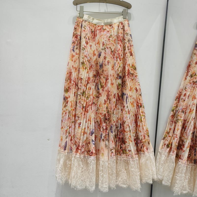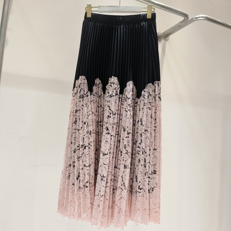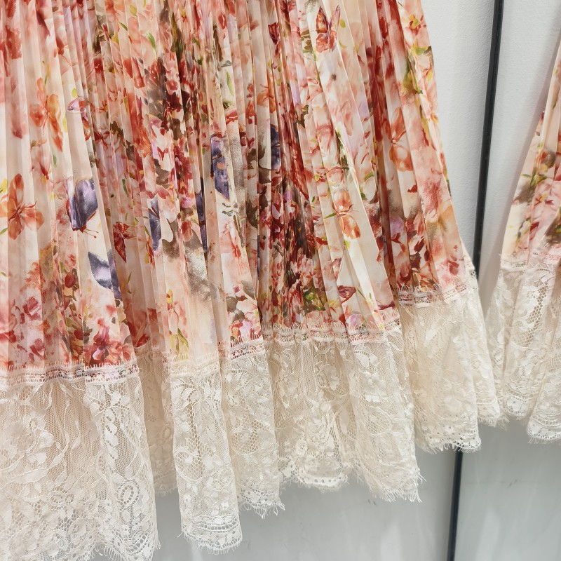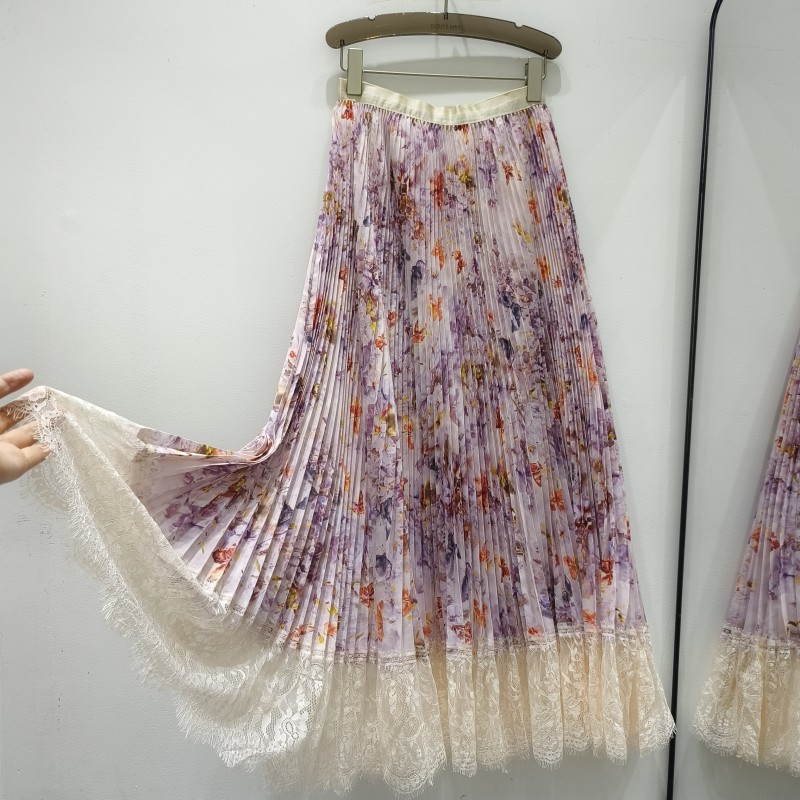 Весна и лето 2025 Моне с цветочным подолом кружевная сшивание нежная длинная юбка романтическая складка оранжевая пудра юбка
