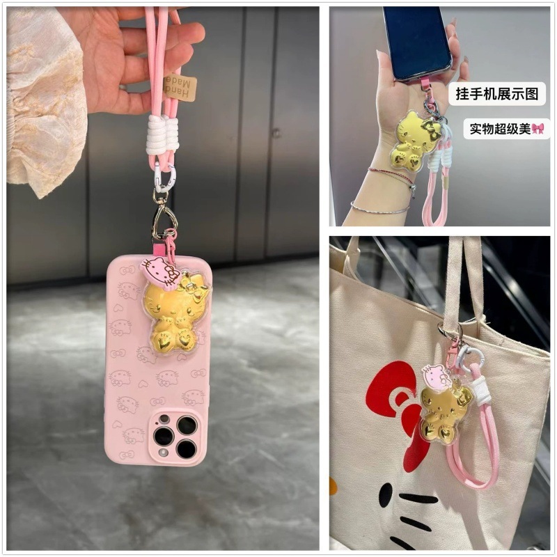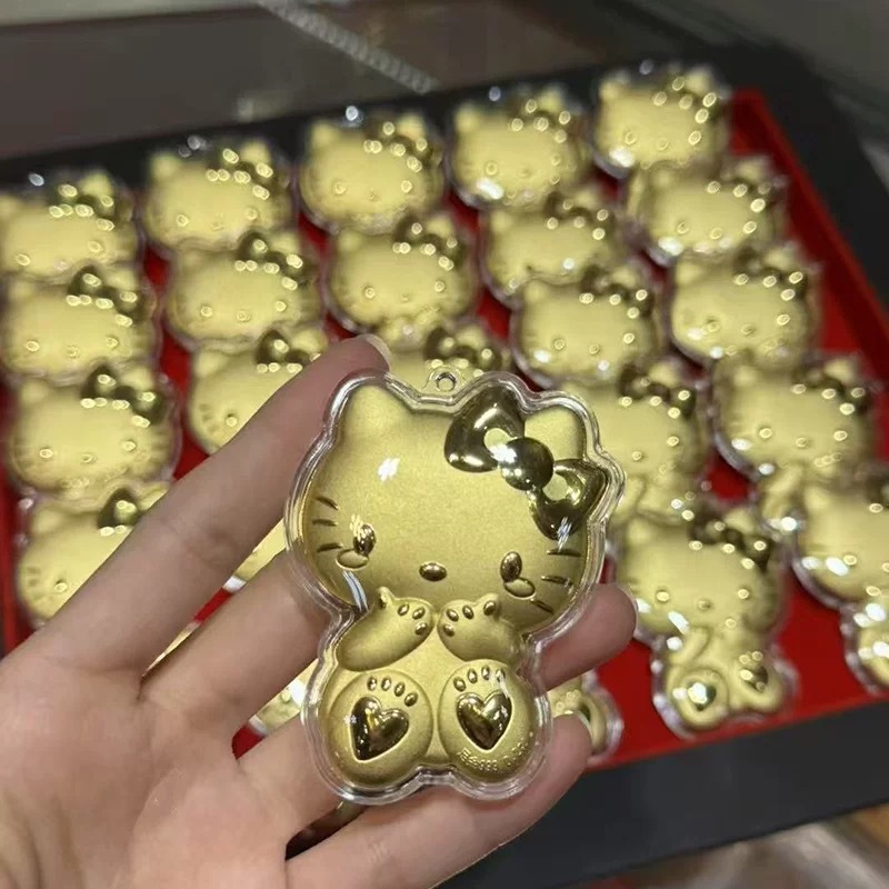 Подвеска в виде кота из чистого золота 999KT, подарок, трехмерный брелок для телефона «Hello Kitty», брелок для ключей, водяной дренаж, подарок