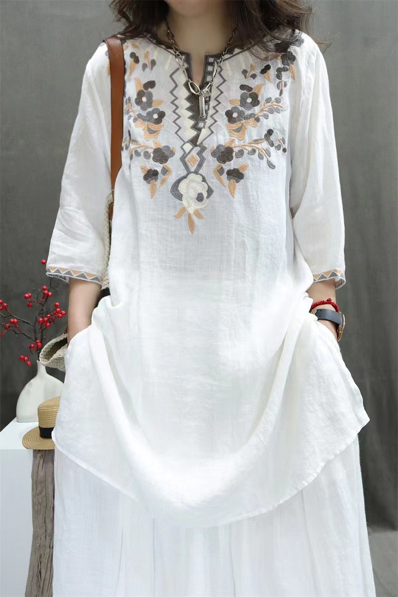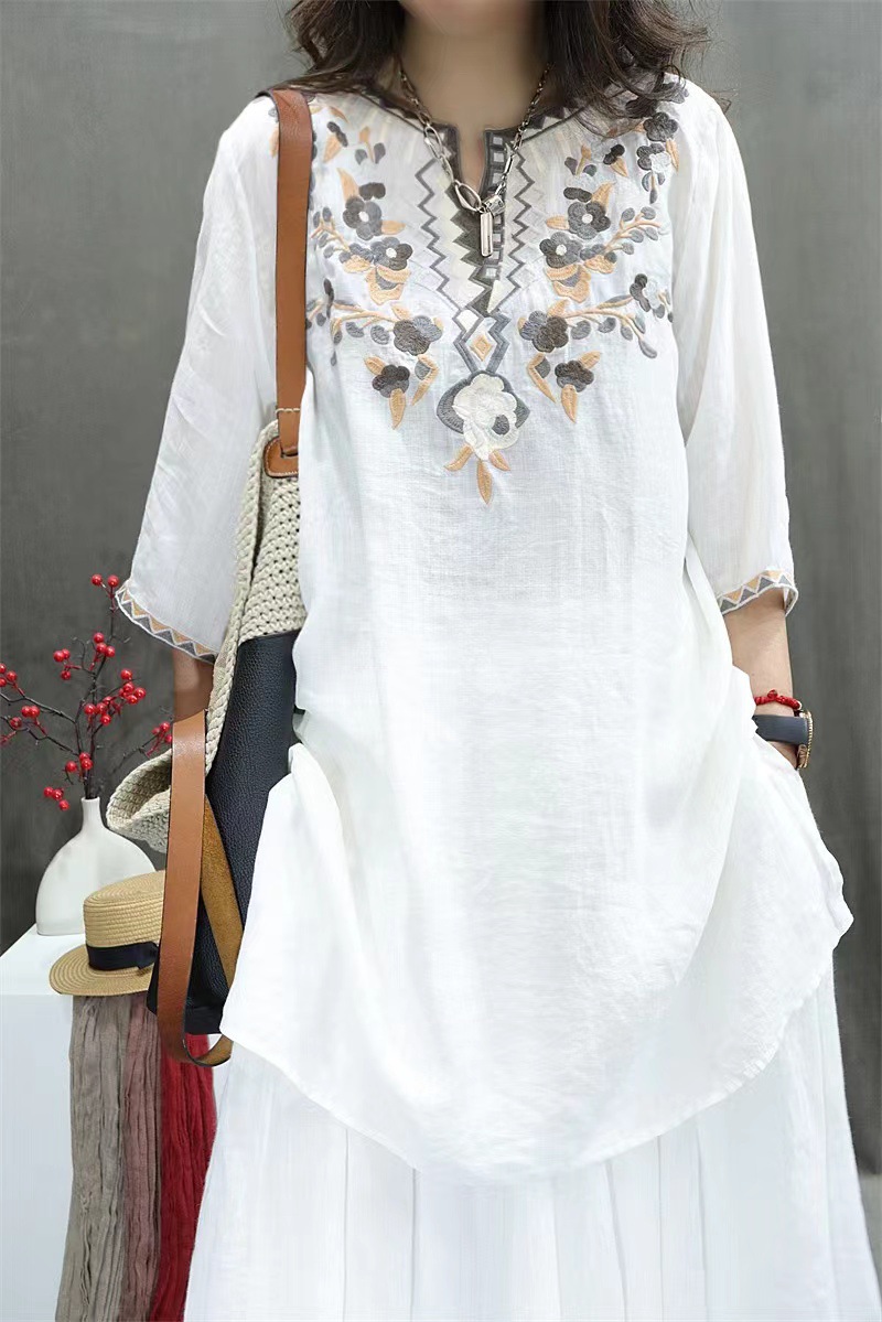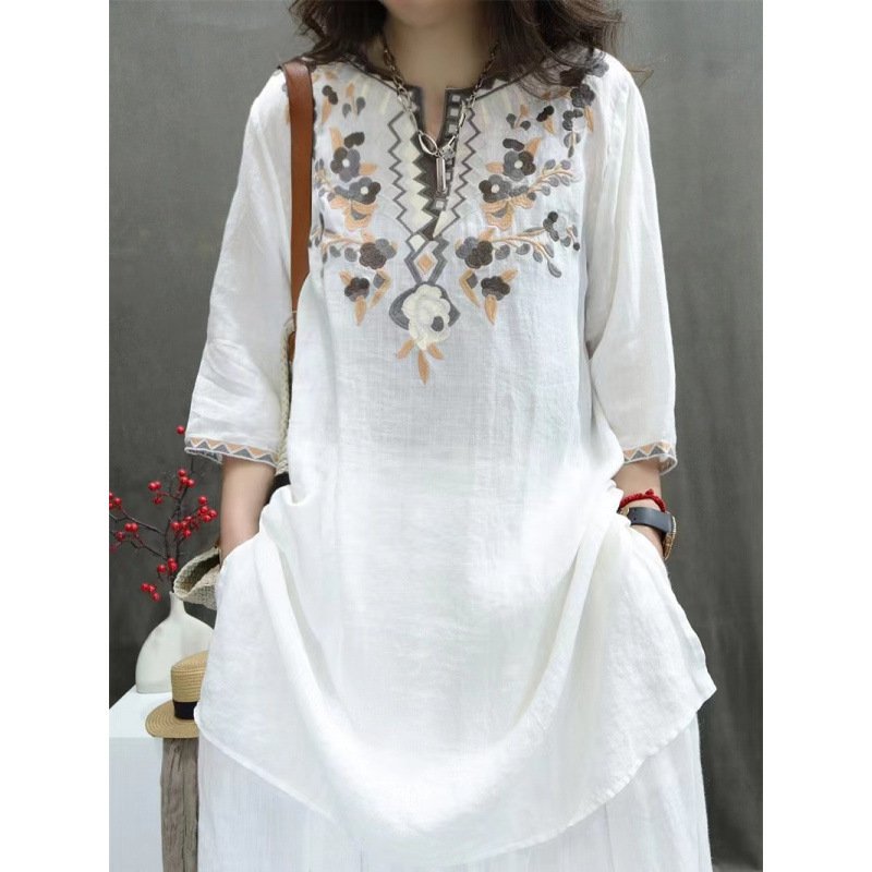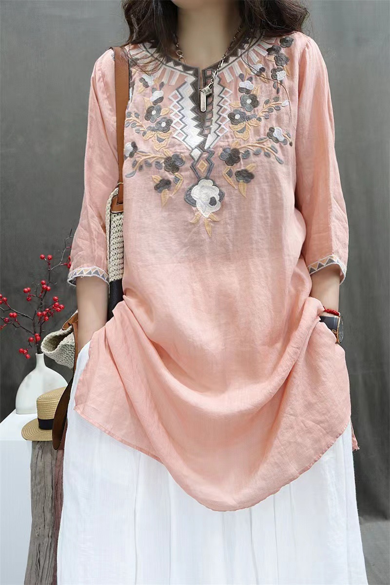 Женская хлопчатобумажная и льняная вышитая кофта в китайском стиле ретро, средняя длина рукава, тонкая, весна-лето-осень 2025 года