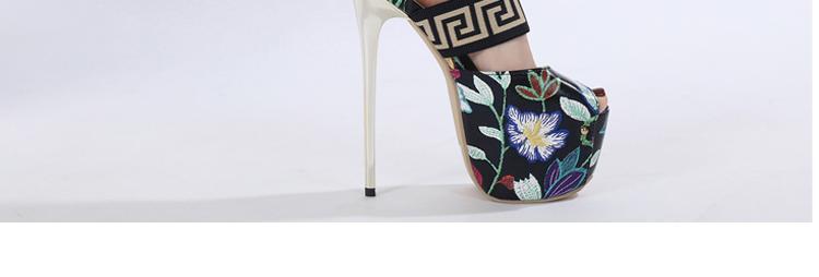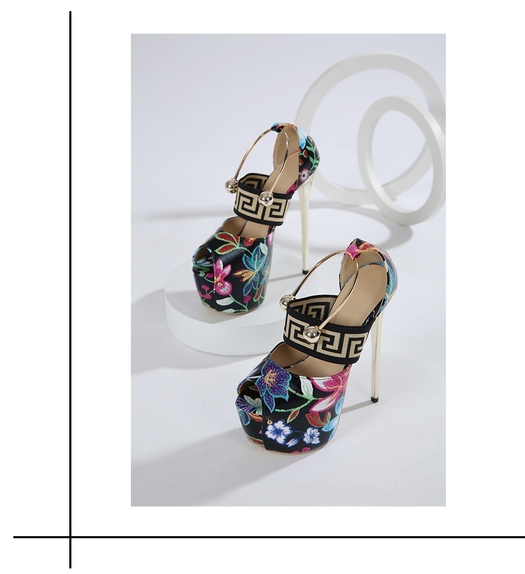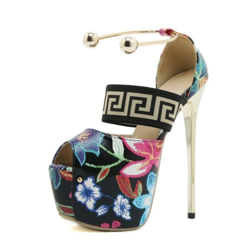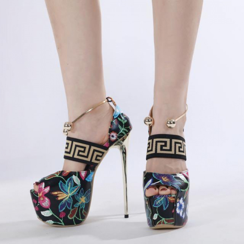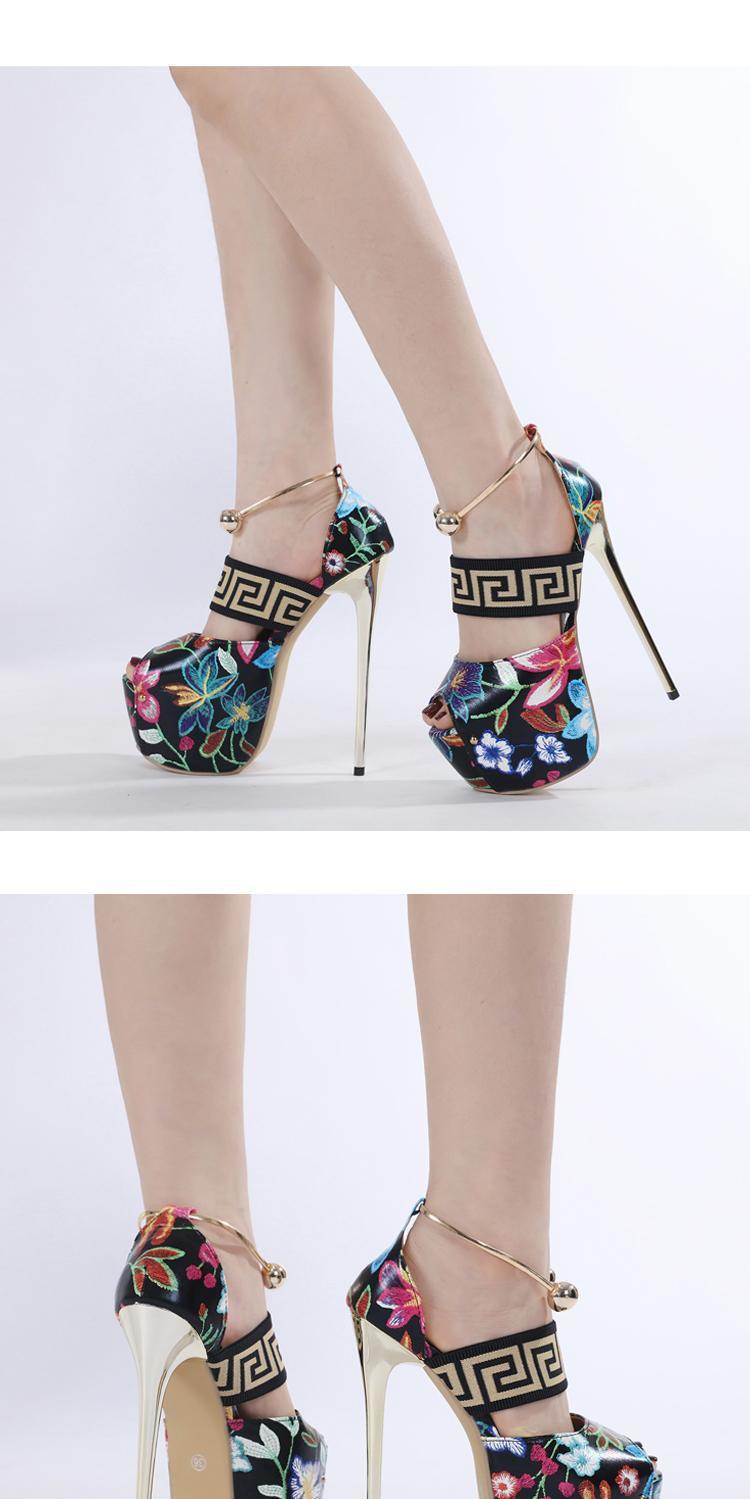 2025 Европейский и американский новый стиль 16cm на высоком каблуке с принтом и большой металлической пряжкой, водонепроницаемая платформа, высокие каблуки в см