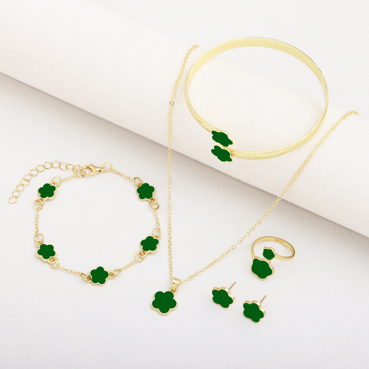 Трансграничный хит продаж, комплект ювелирных изделий с пятилистным клевером для женщин, простое ожерелье с счастливым цветком, универсальные серьги для рук, комплект из 5 предметов