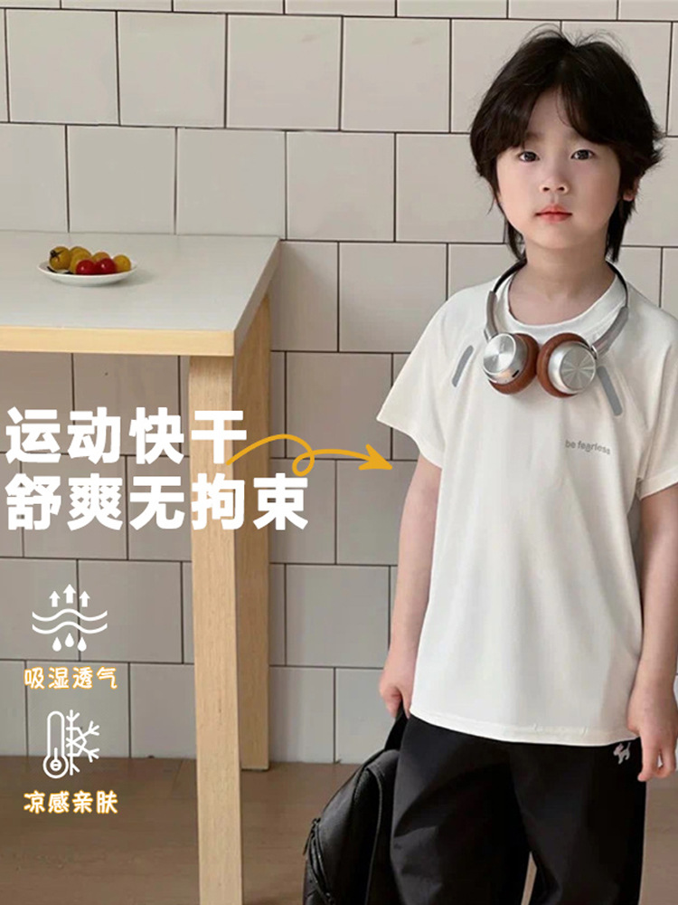 Мальчик быстрая сухая одежда для девочек летом с короткими рукавами ледяной шелк
