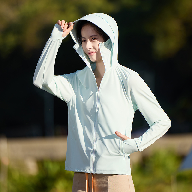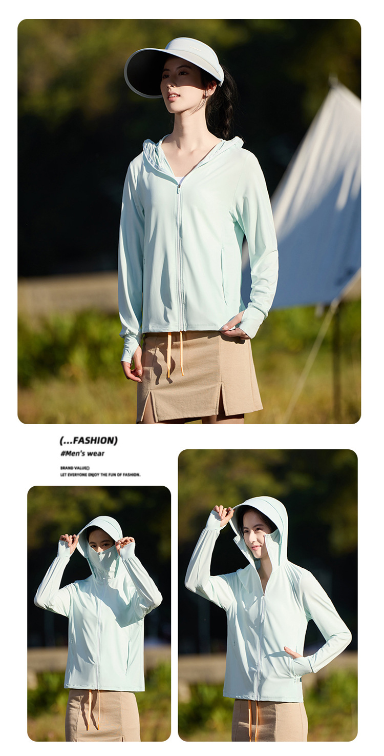 Банановая солнцезащитная одежда для улицы, однотонная дышащая и удобная куртка из ледяного шелка с капюшоном для пары, новая летняя солнцезащитная одежда 7030