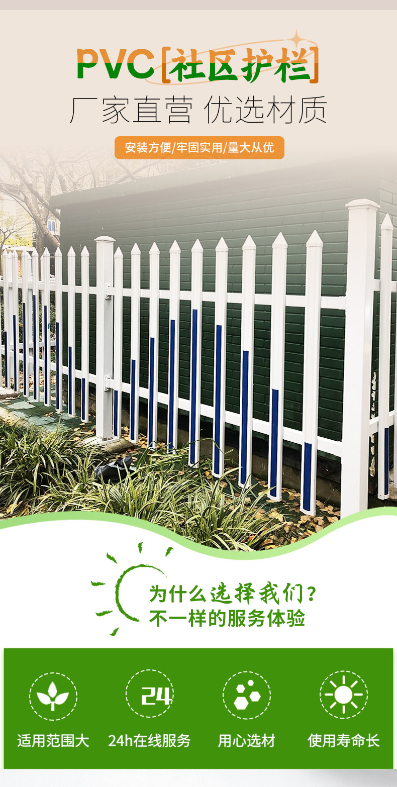 Индивидуальные утолщенные ПВХ ограждения для сообщества, пластиковые стальные заборы для дома, заводские ограждения для детских садов, уличные изоляционные ограждения.