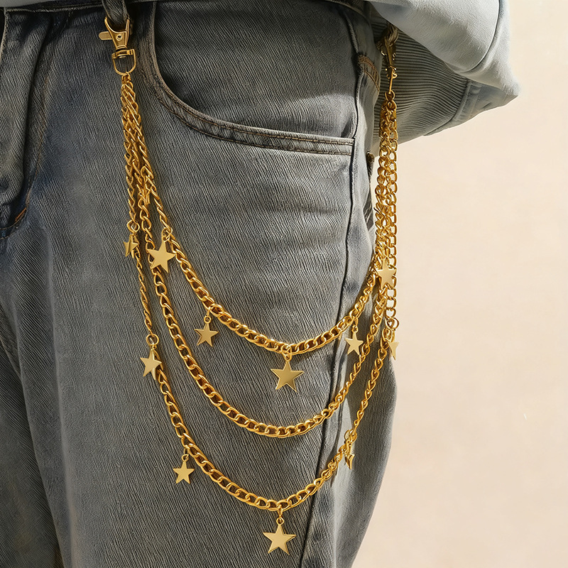 Трансграничный хип-хоп панк пятиконечная звезда подвеска на талии цепи ins стиль моды личность многослойная металлическая цепь для мужчин и женщин брюки цепи