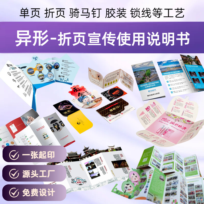 Специальная форма складной печати по индивидуальному заказу -133.999999999% off листовок, руководство по эксплуатации, сложенная карточная бумага, производитель, небольшая партия
