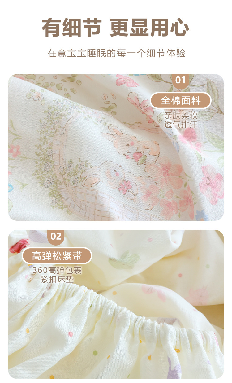 这款床笠采用了40支全棉面料,组织结构稀疏些,所以更加透气吸汗