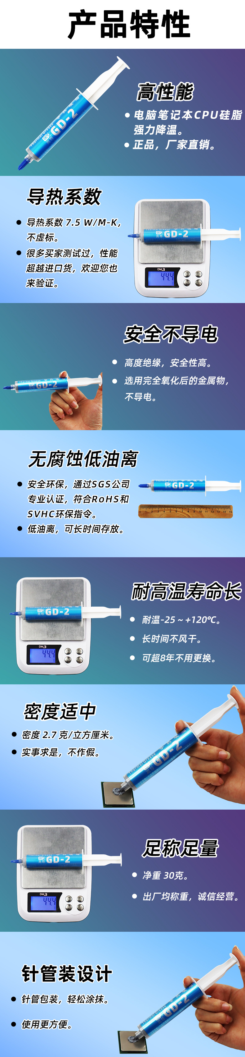 Высокая проводимость GD-2, чистый вес 30 грамм в шприце, серый компьютерный процессор/графический процессор, теплопроводящая силиконовая смазка, охлаждающая силиконовая паста SY30