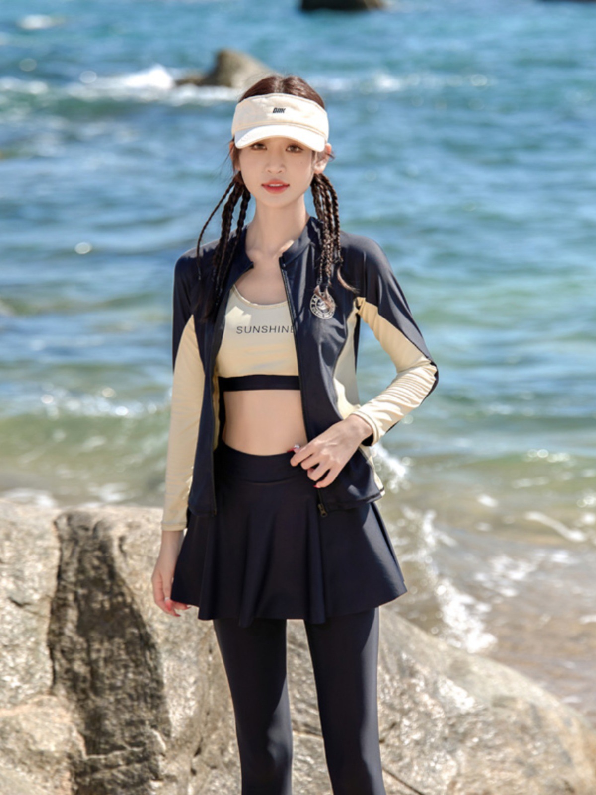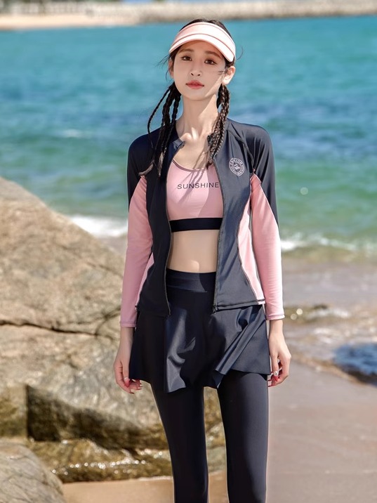 2025 новый четырехкомпонентный консервативный раздельный купальник с длинными рукавами и брюками для горячего сезона, защита от солнца, гидрокостюм, спортивный стиль в корейском стиле