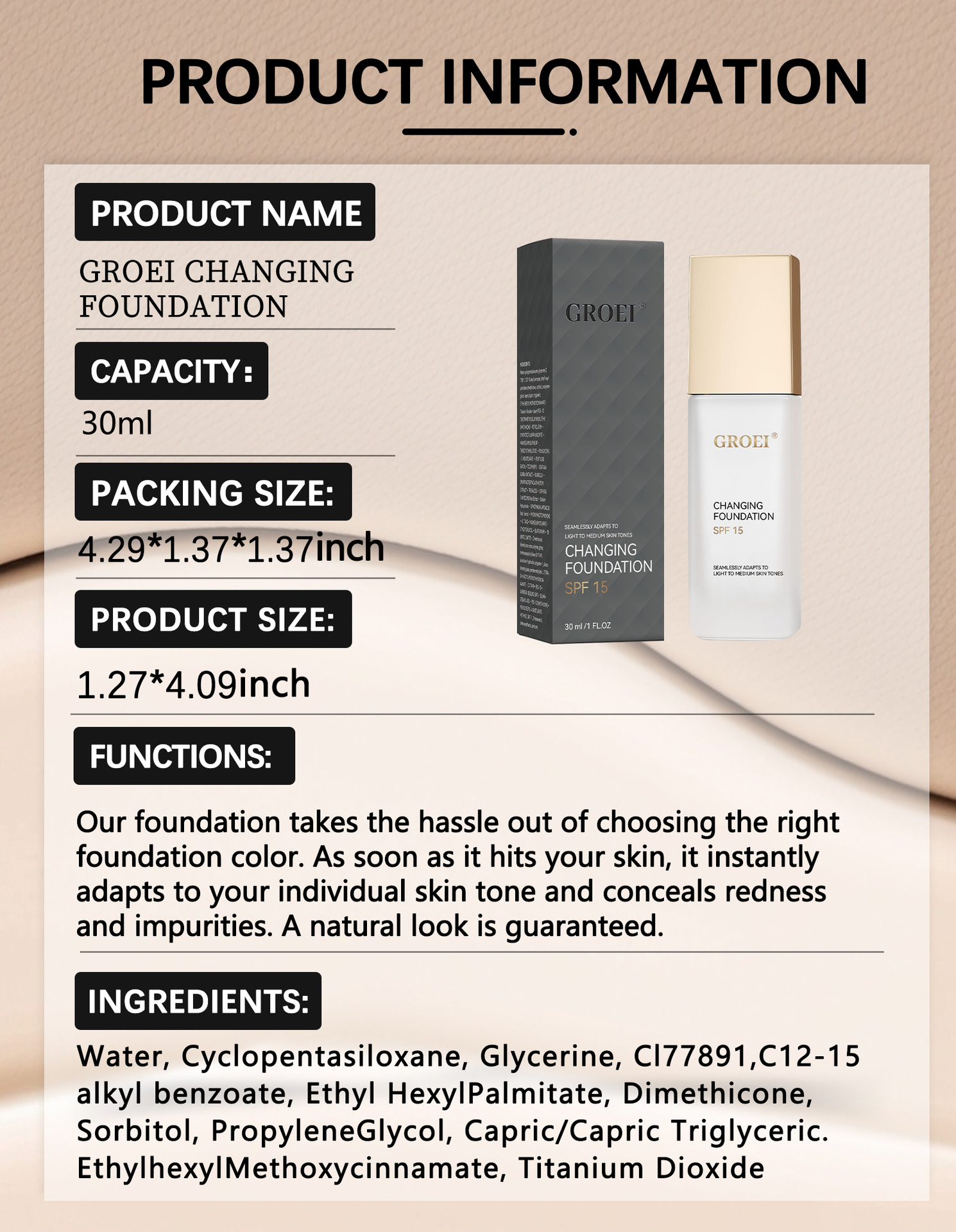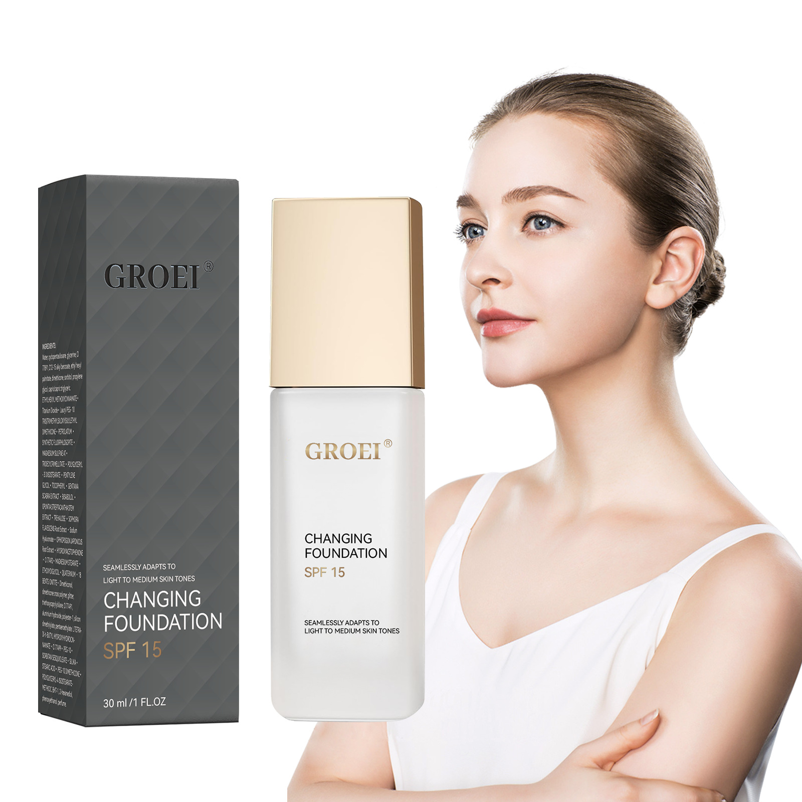 30ml; Тональный крем GROEI с эффектом изменения цвета, 30 мл