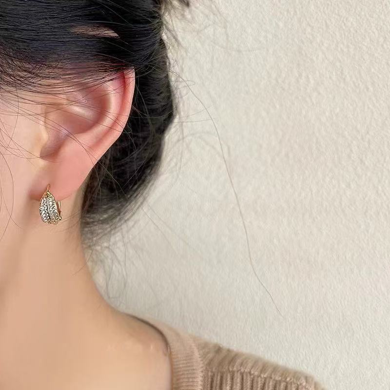 Маленькие и изысканные серьги-листочки с микроинкрустацией, пряжки для ушей для женщин, нишевые элитные элегантные серьги, новые серьги 2025 года