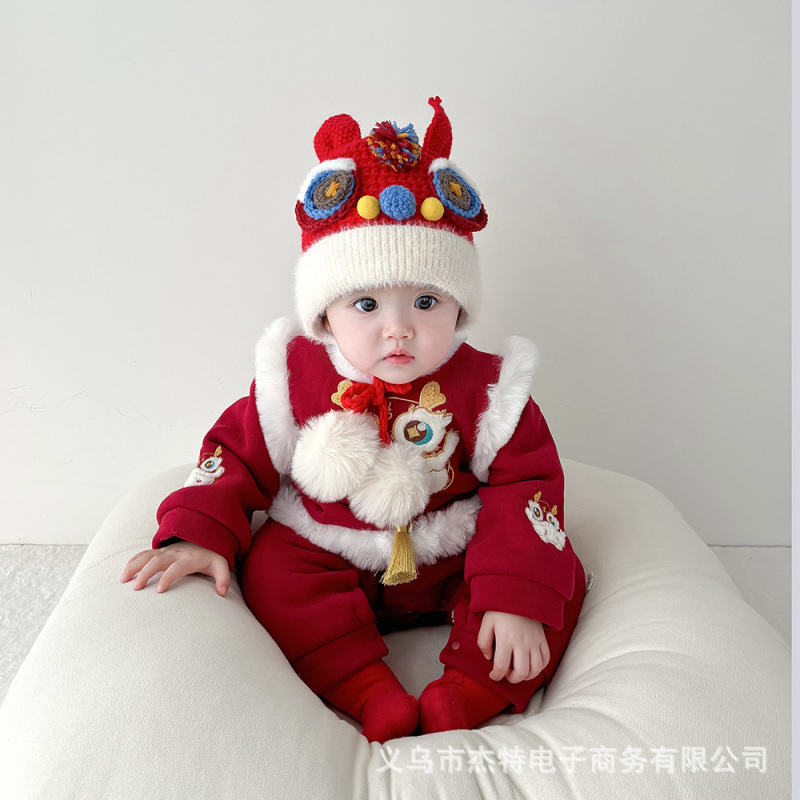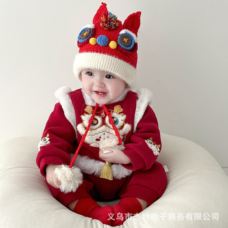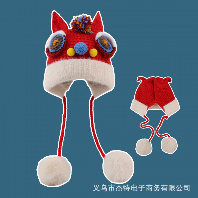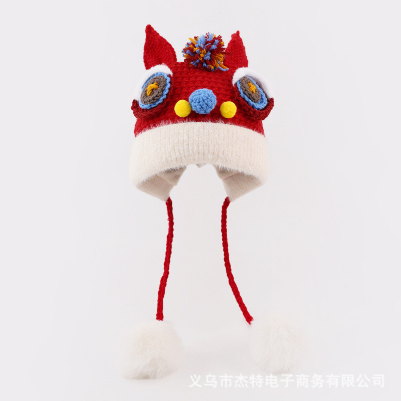 Шапка для пробуждения детеныша льва в китайском стиле, осенне-зимняя теплая утолщенная шерстяная шапка, защитная шапка для ушей, шапка с головой тигра для мальчиков и девочек