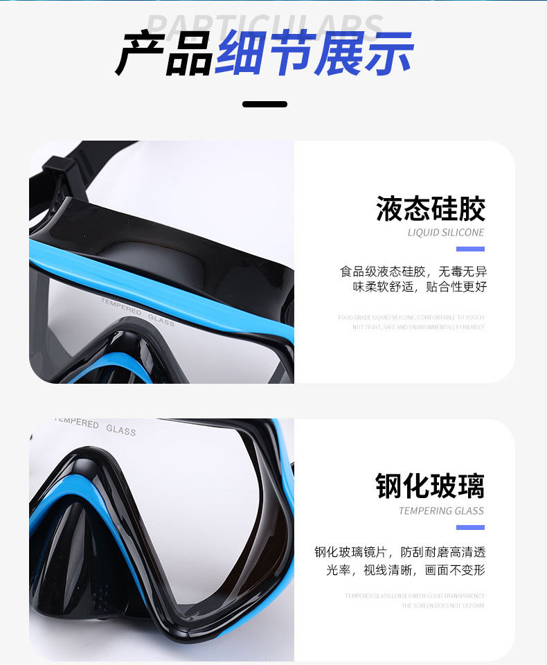 Трансграничные детские и взрослые силиконовые очки для дайвинга, трубка для подводного плавания, высокое разрешение, закаленное стекло для плавания, большая рамка, поверхность для дайвинга