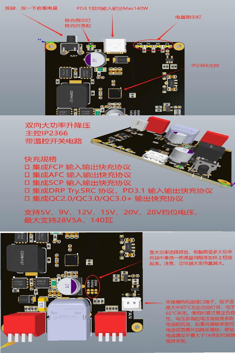 Стандартный модуль двусторонней быстрой зарядки PD3.1 мощностью 140 Вт IP2366 с автоматическим контролем температуры, плата для зарядки литиевых батарей от 2 до 6 строк