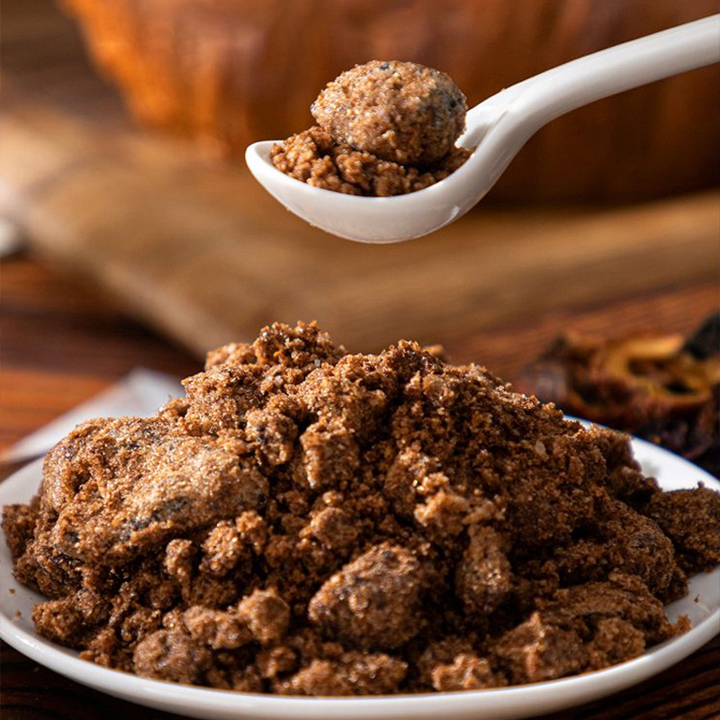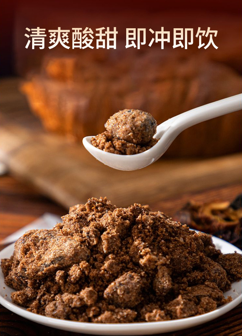 Пищевая глюкоза, порошок кислой сливы, кумкват, боярышник, черная слива, слива, апельсиновая цедра, шелковица, османтус (съедобный), карамельный краситель (метод сульфита аммония).