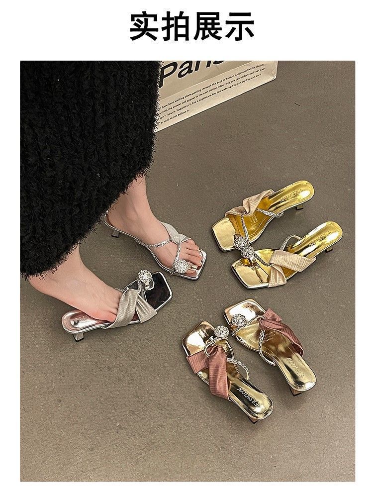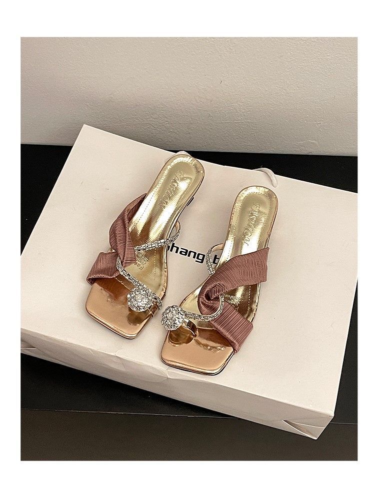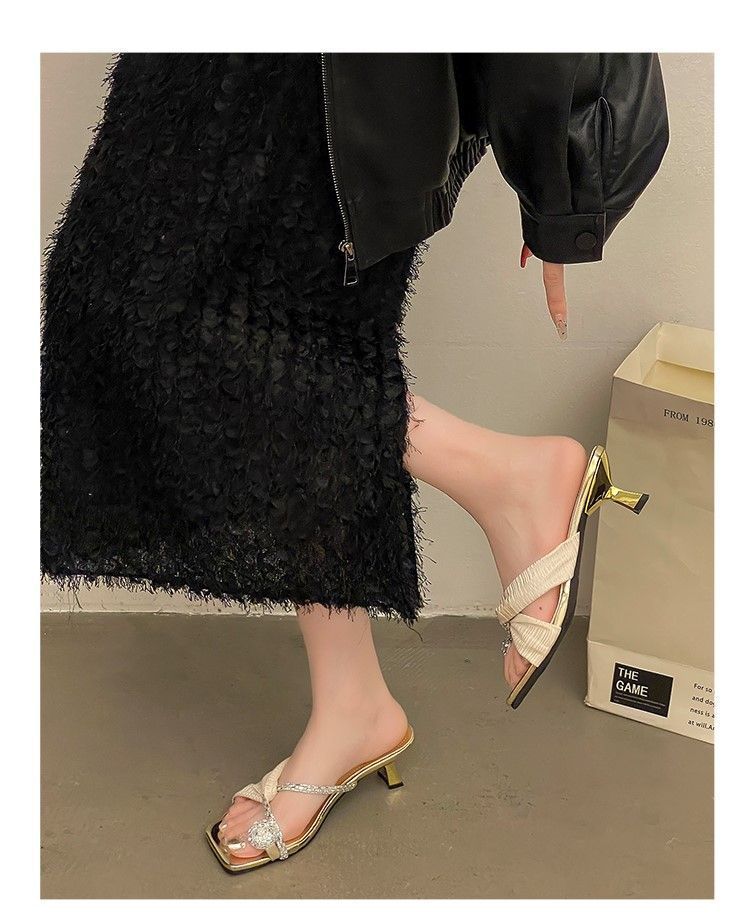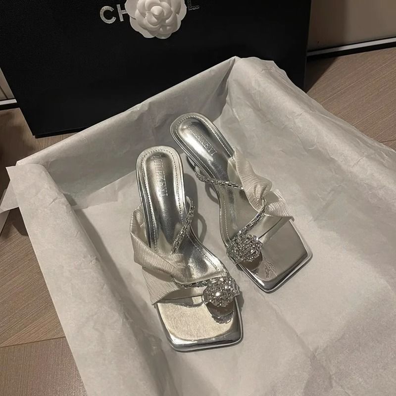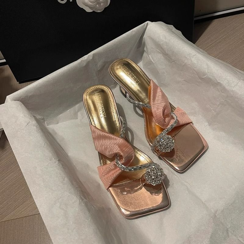 Сексуальные и красивые холодные шлепанцы женские продвинутые чувства летом новый сетчатый красный голубь яичный стразы с юбкой на высоких каблуках
