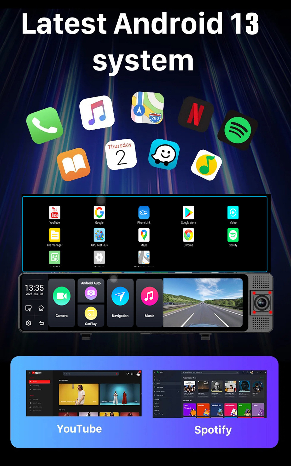За рубежом три объектива 4G Android 13 система 12 дюймов 4 64 ГБ большой экран памяти Carplay видеорегистратор