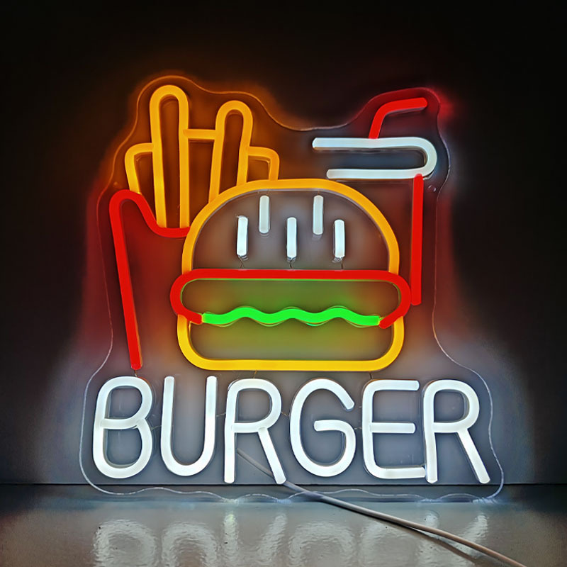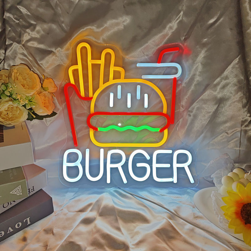 Трансграничные амазонка светодиодные неоновые украшения ресторана гамбургер картофель фри креативные пользовательские световые световые световые знаки