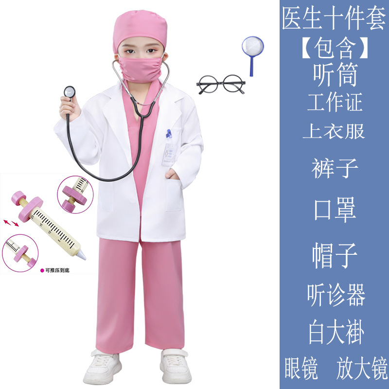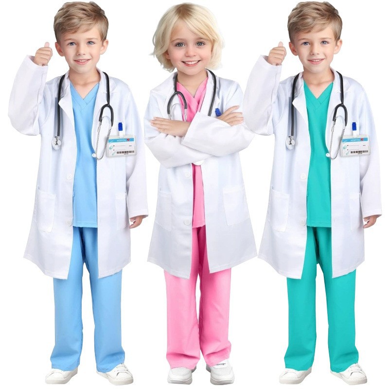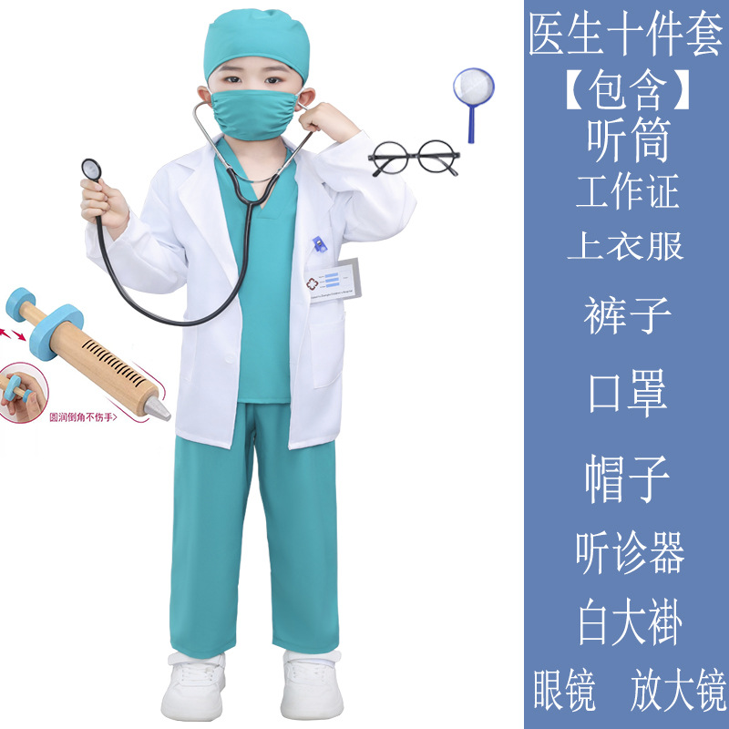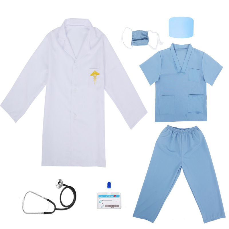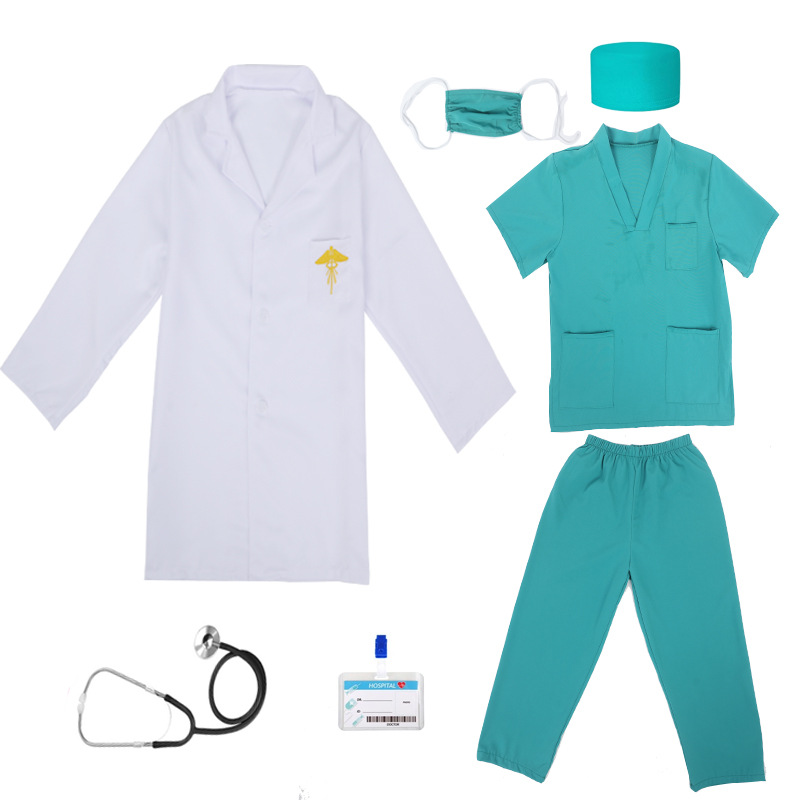Трансграничный научный эксперимент Детский хирургический костюм Медицинская одежда Белое пальто Малыш Доктор играет в форме медсестры