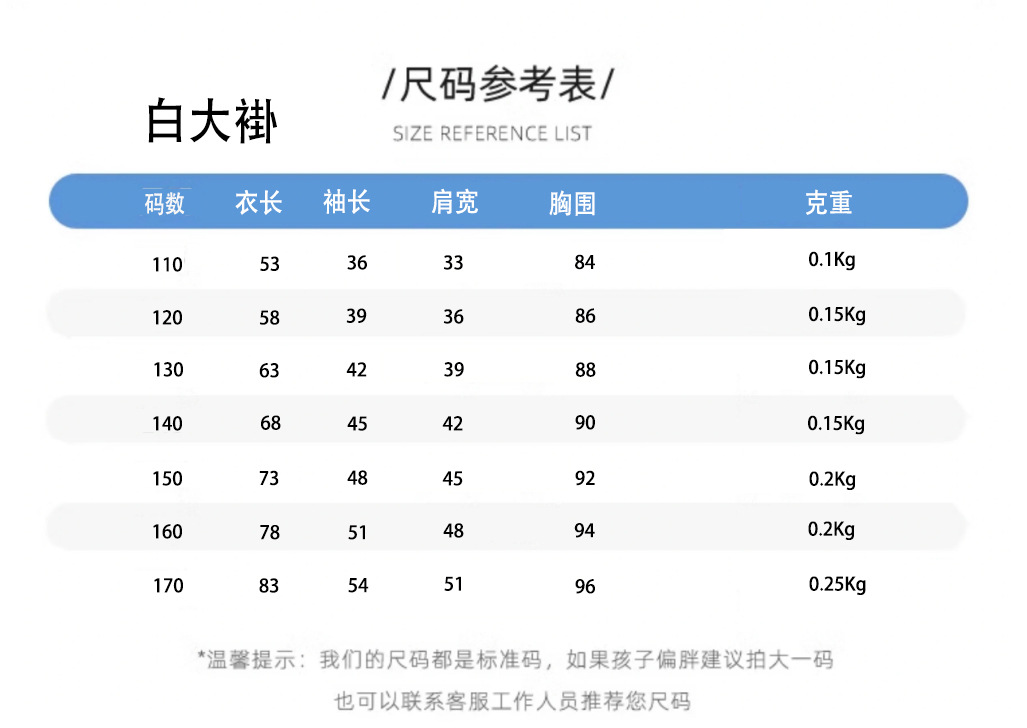 110cm; 120cm; 130cm; 140cm; 150cm; 160cm; 170cm