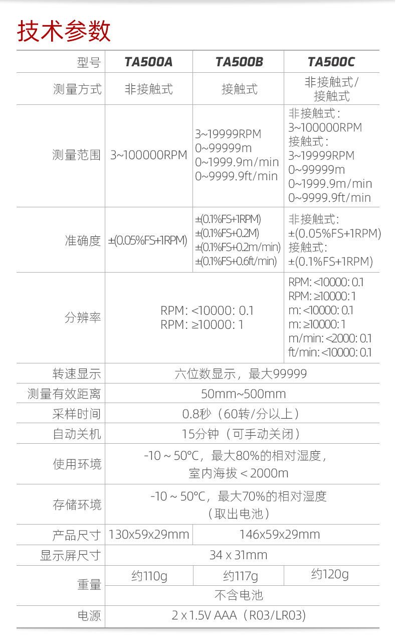TA500A (фотоэлектрическое измерение); TA500B (контактное измерение); TA500C (фотоэлектрический контакт двойного назначения); TA506A (фотоэлектрическая базовая модель)