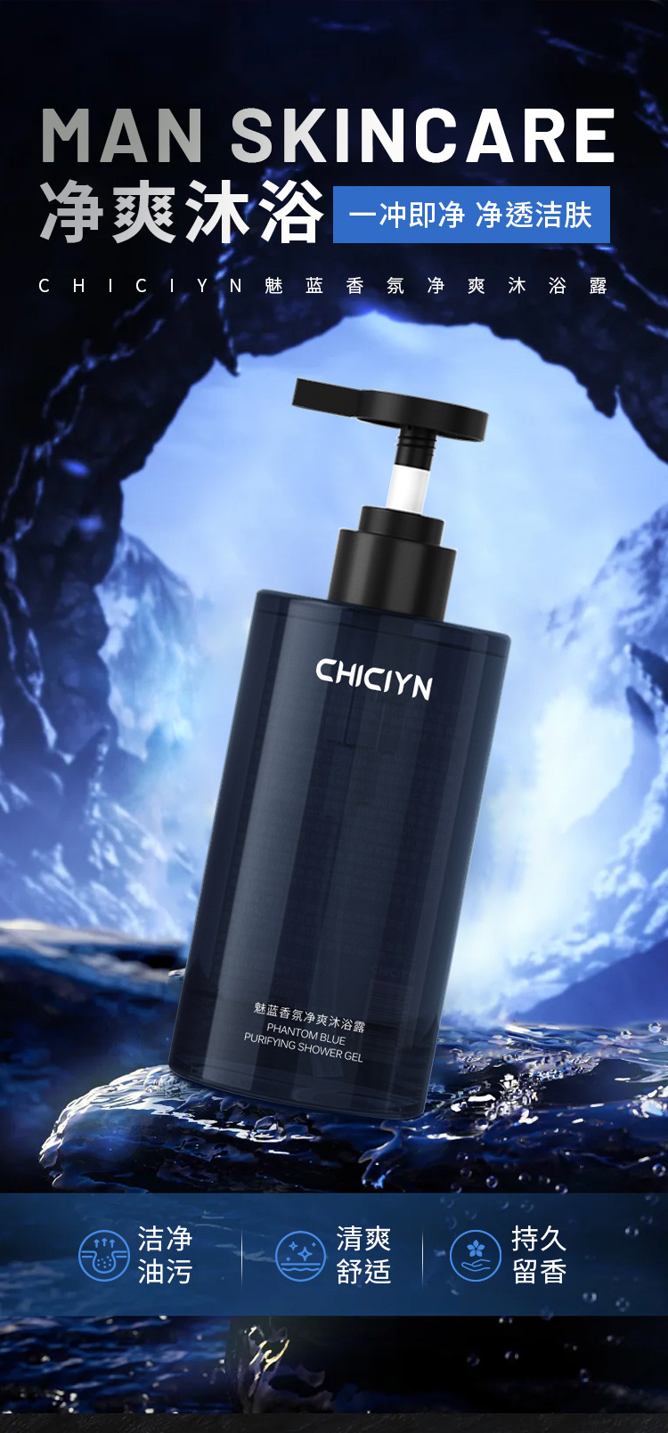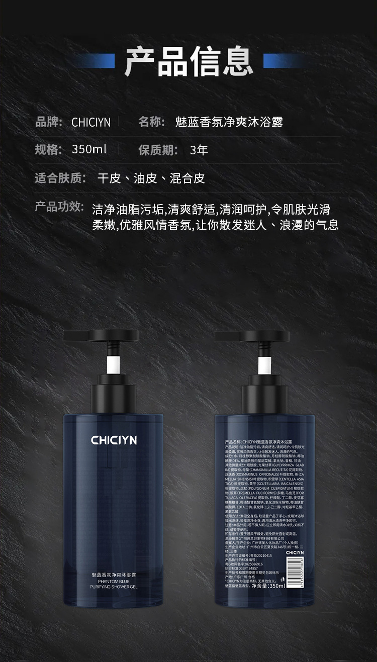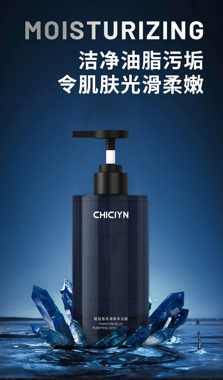 Очаровательный синий ароматный гель для душа для мужчин Глубокое очищение Контроль жирности Стойкий аромат Очищающий Освежающий Увлажняющий Оптовая продажа от крупных производителей