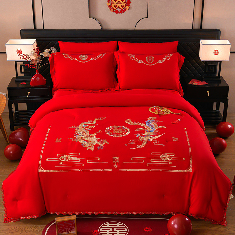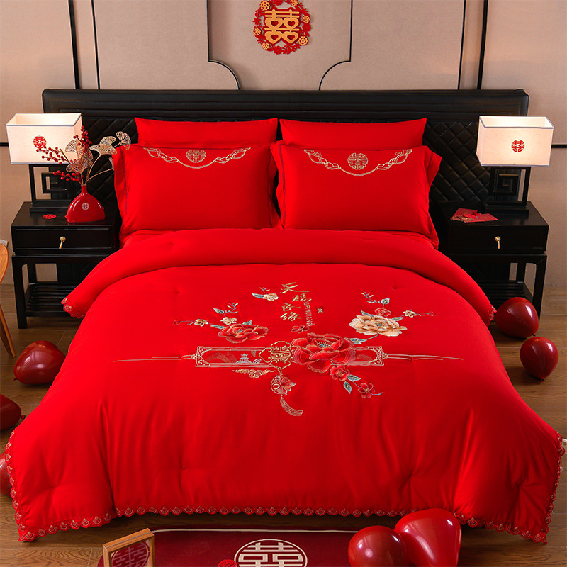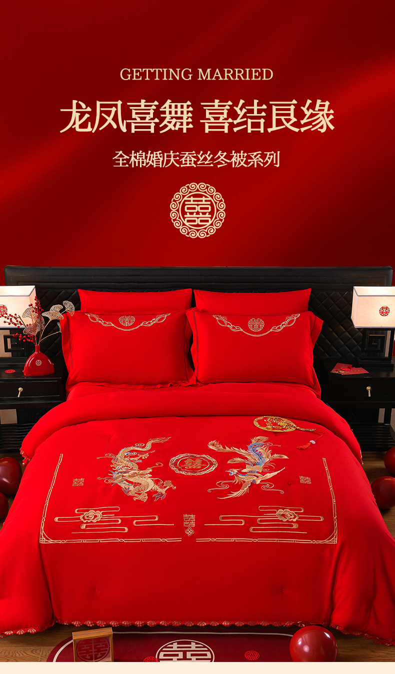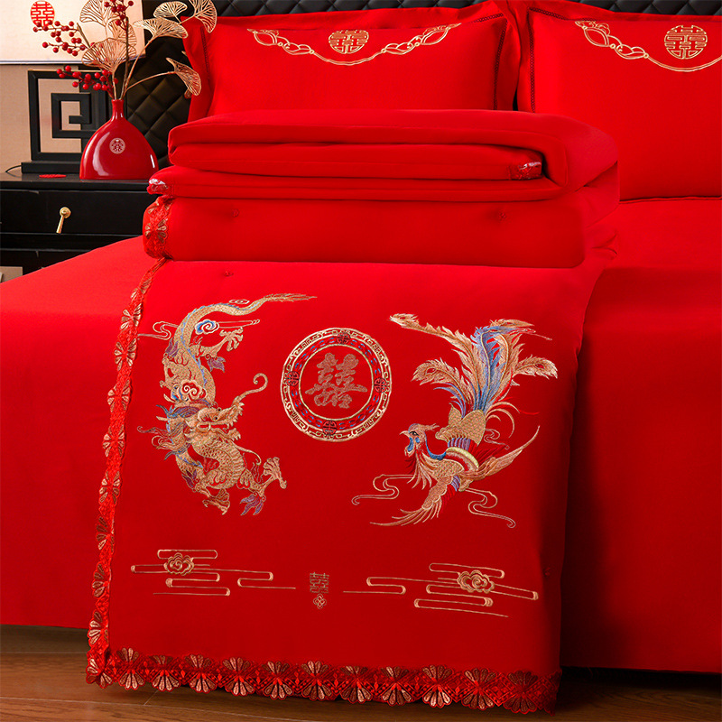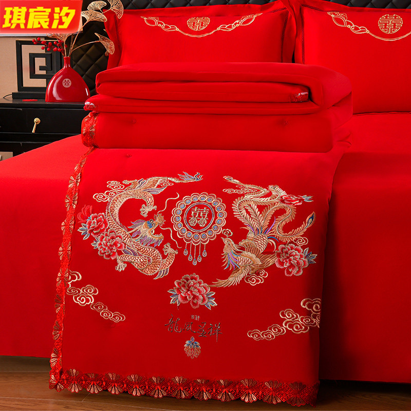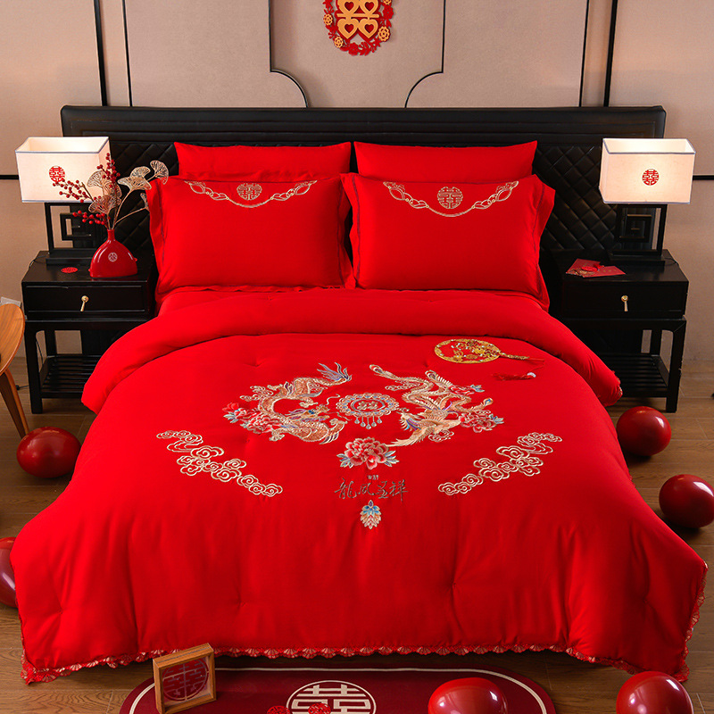 Новое хлопковое свадебное зимнее одеяло из шелкового шелка, свадебное красное одеяло из чистого хлопка с вышивкой, четыре сезона, весенне-осеннее одеяло, подарочное одеяло