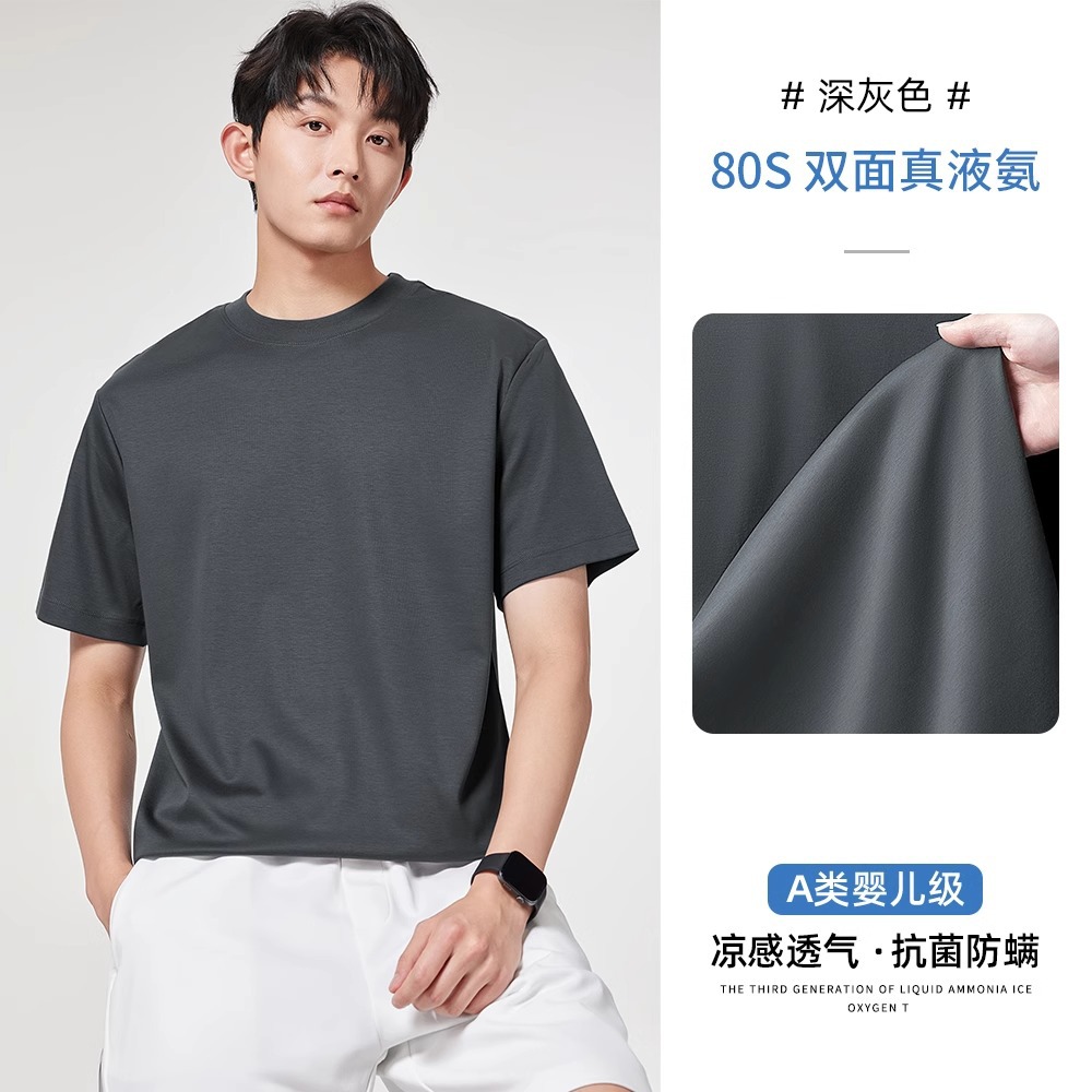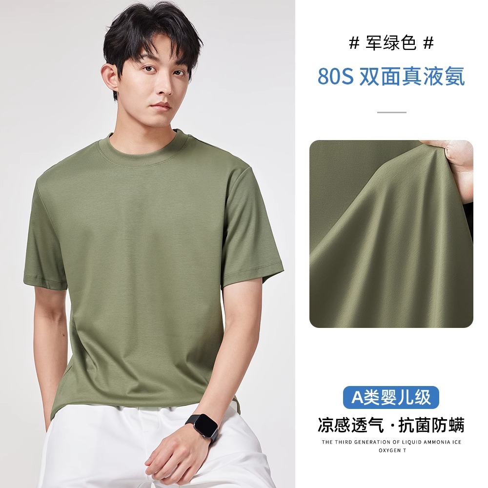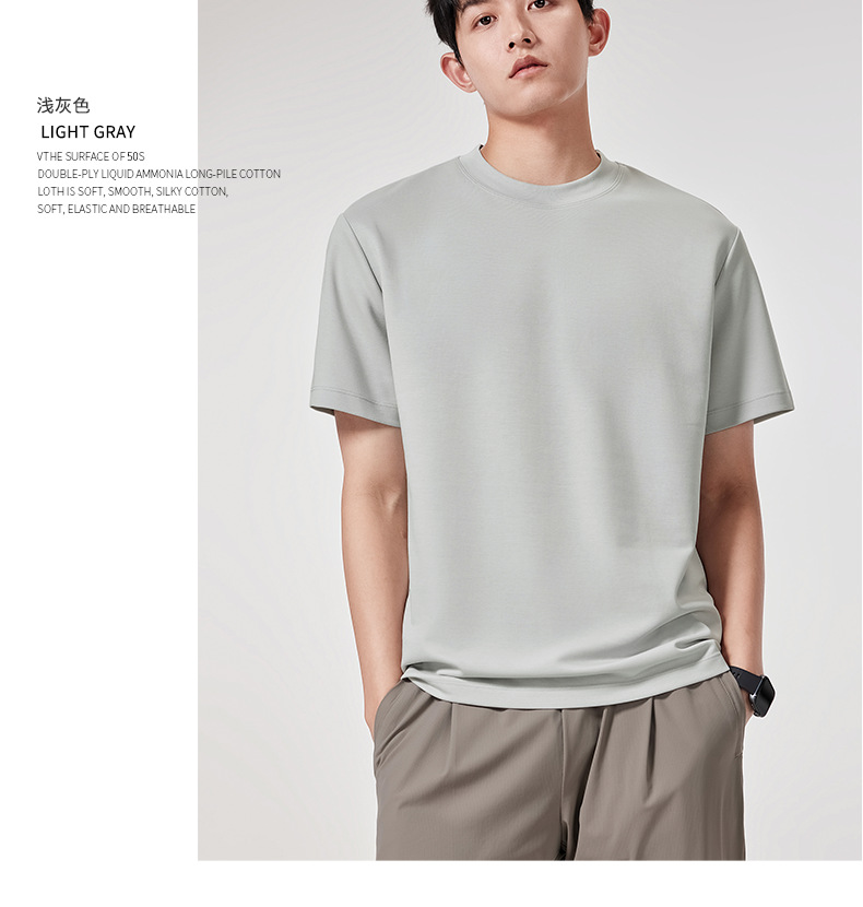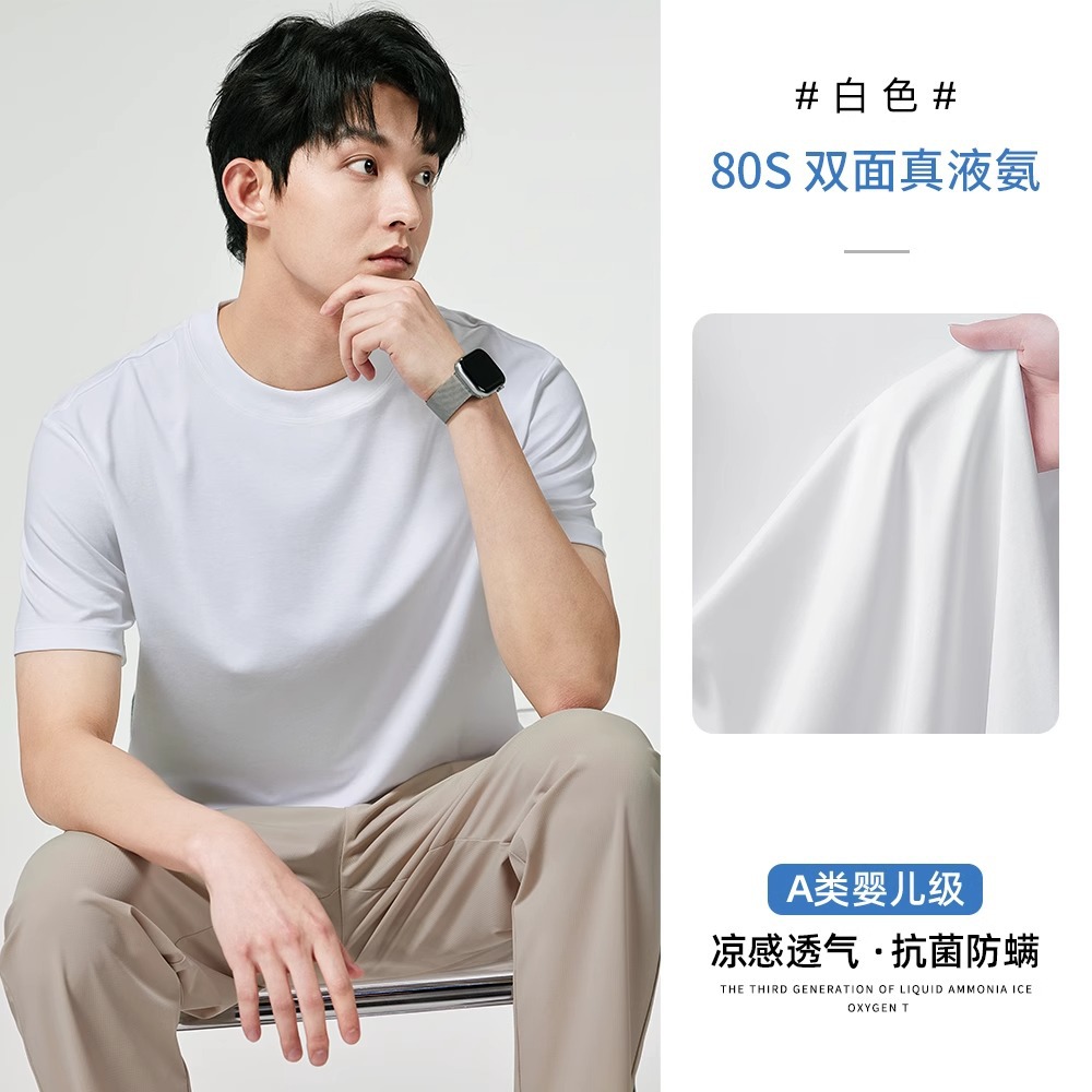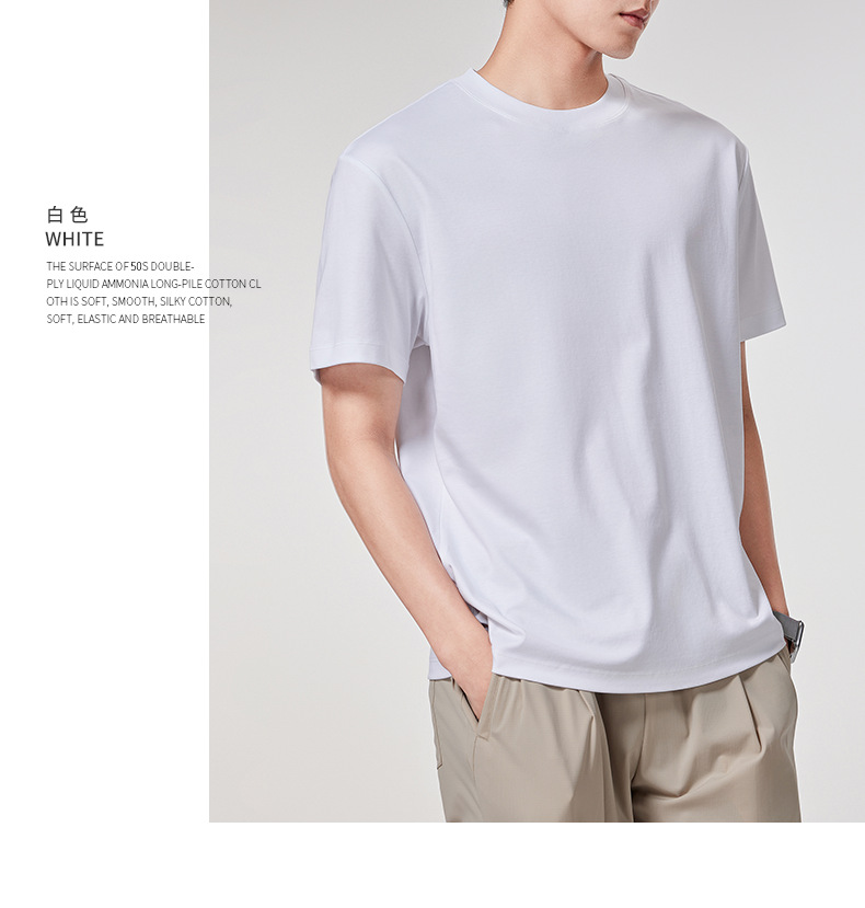Жидкий аммиак мерсеризует хлопок с двойной проволокой 80s высокого класса с короткими рукавами футболка для мужчин 2025 летом ледяной шелк прохладный чистый белый хлопок