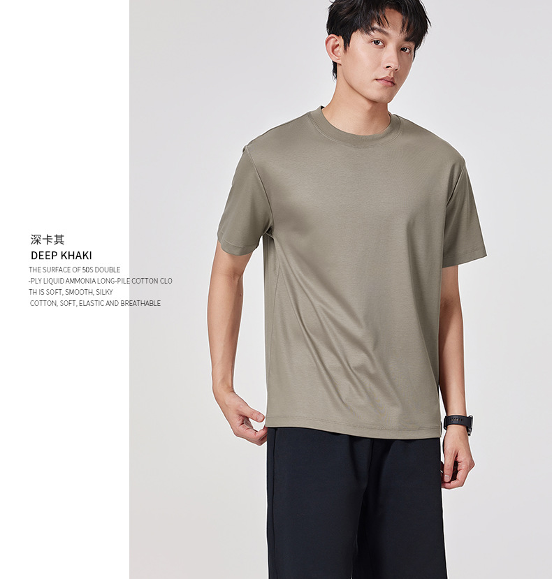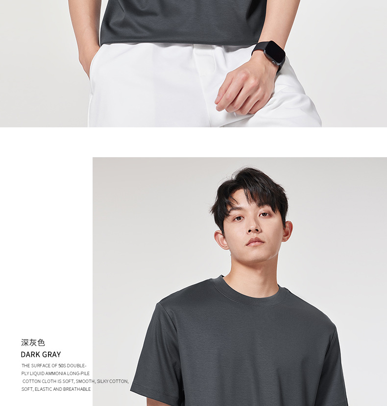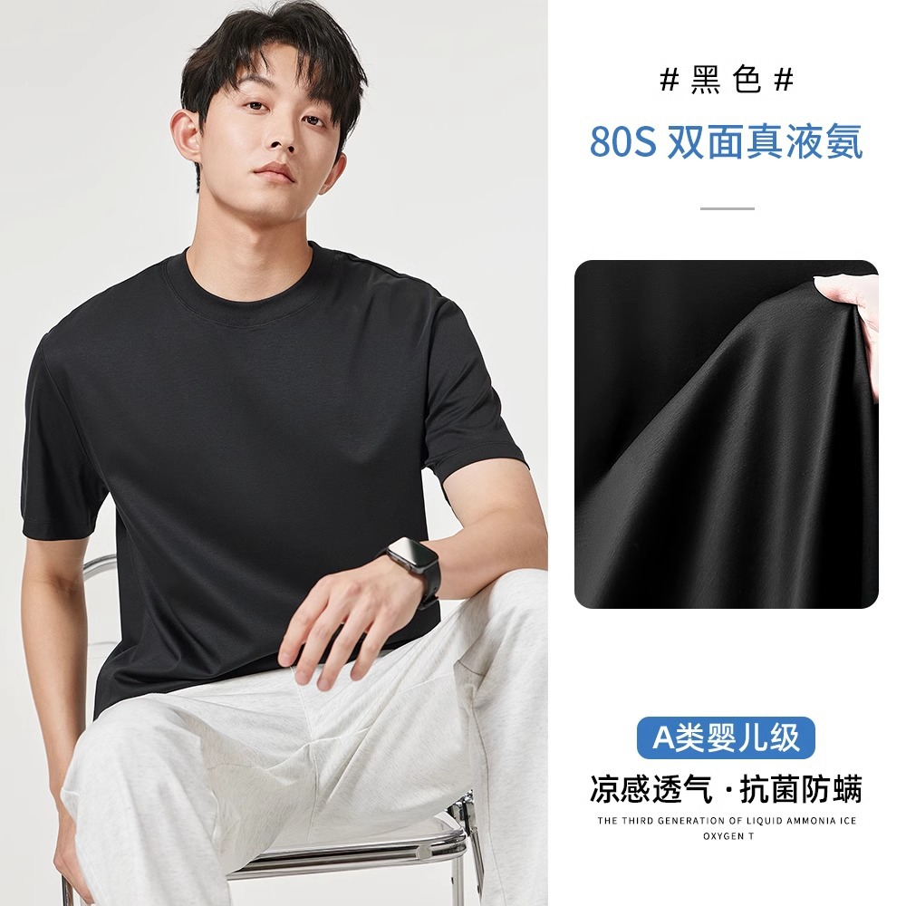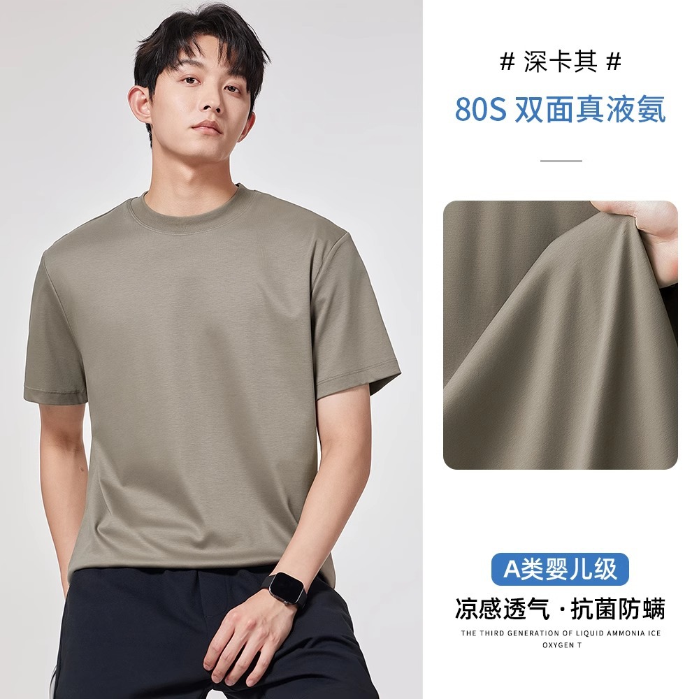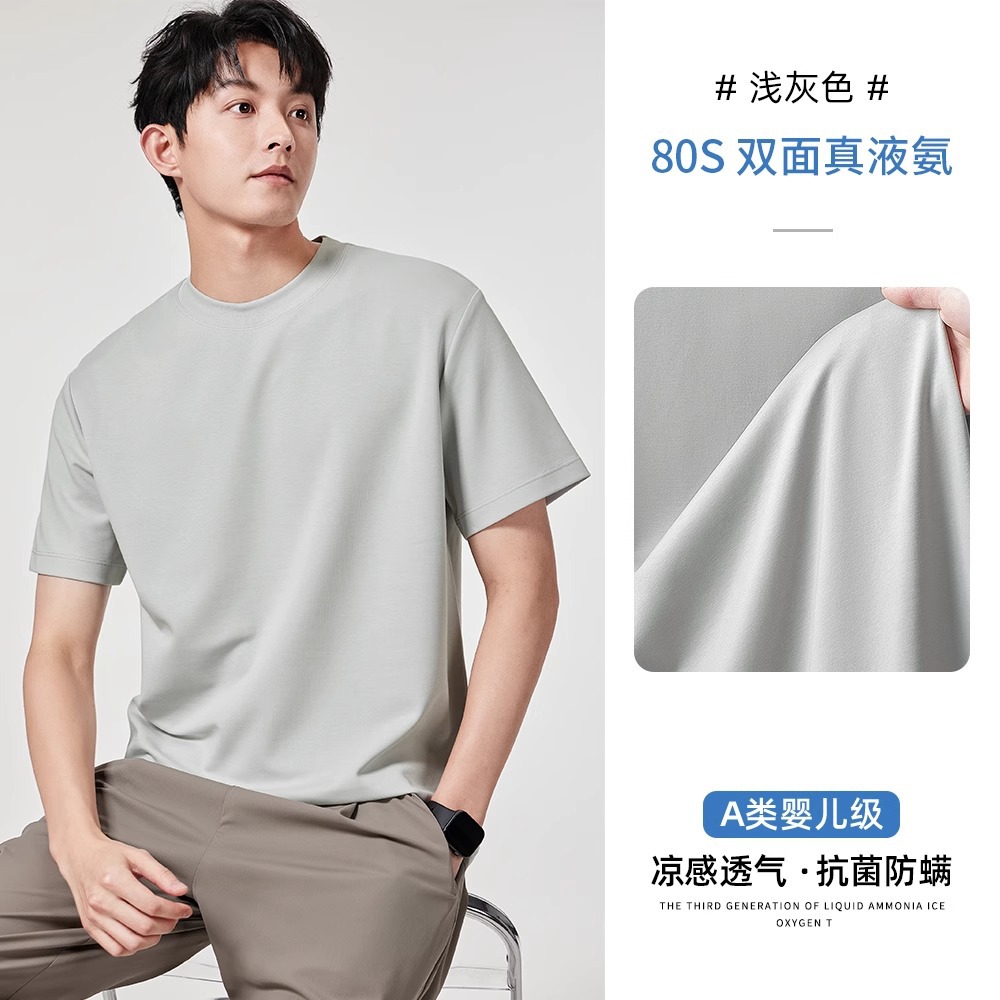 Жидкий аммиак мерсеризует хлопок с двойной проволокой 80s высокого класса с короткими рукавами футболка для мужчин 2025 летом ледяной шелк прохладный чистый белый хлопок