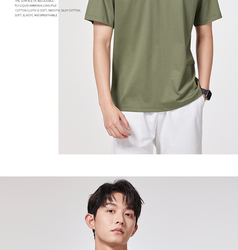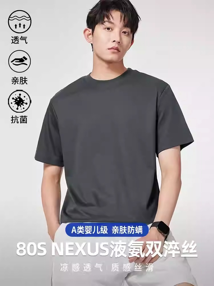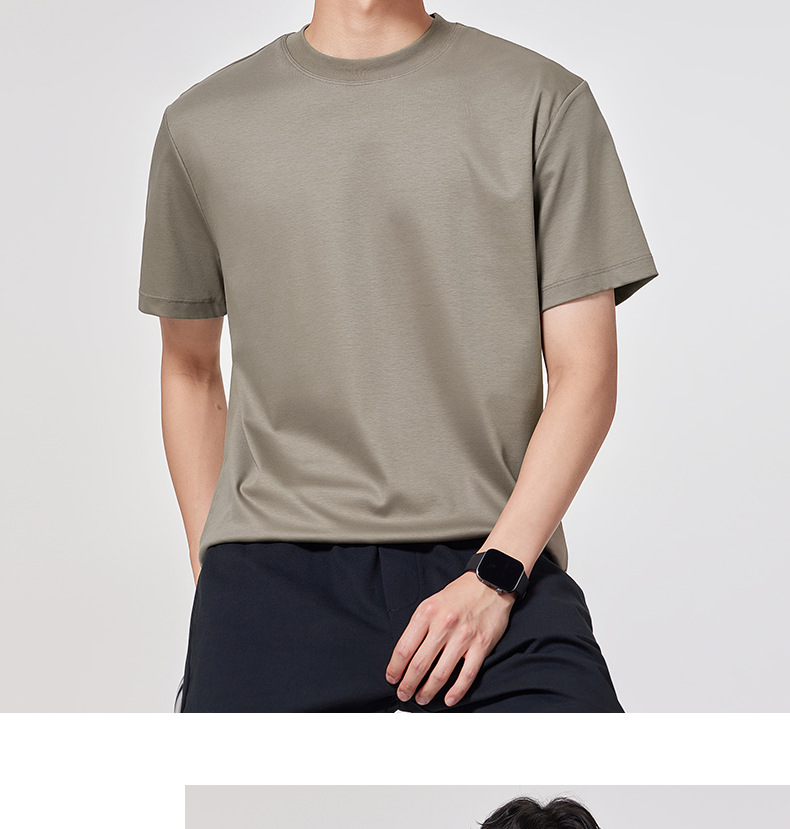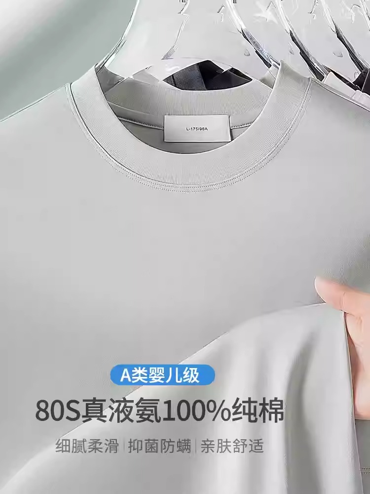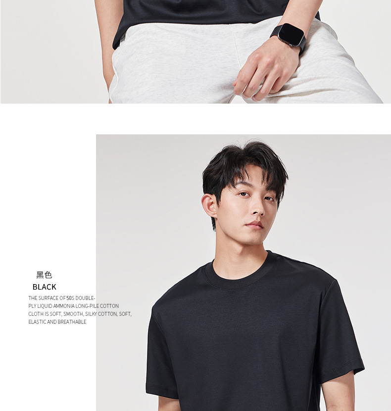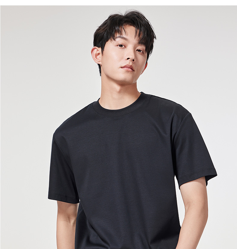 Жидкий аммиак мерсеризует хлопок с двойной проволокой 80s высокого класса с короткими рукавами футболка для мужчин 2025 летом ледяной шелк прохладный чистый белый хлопок