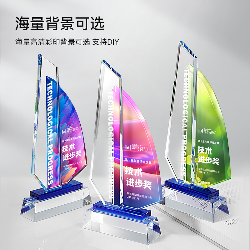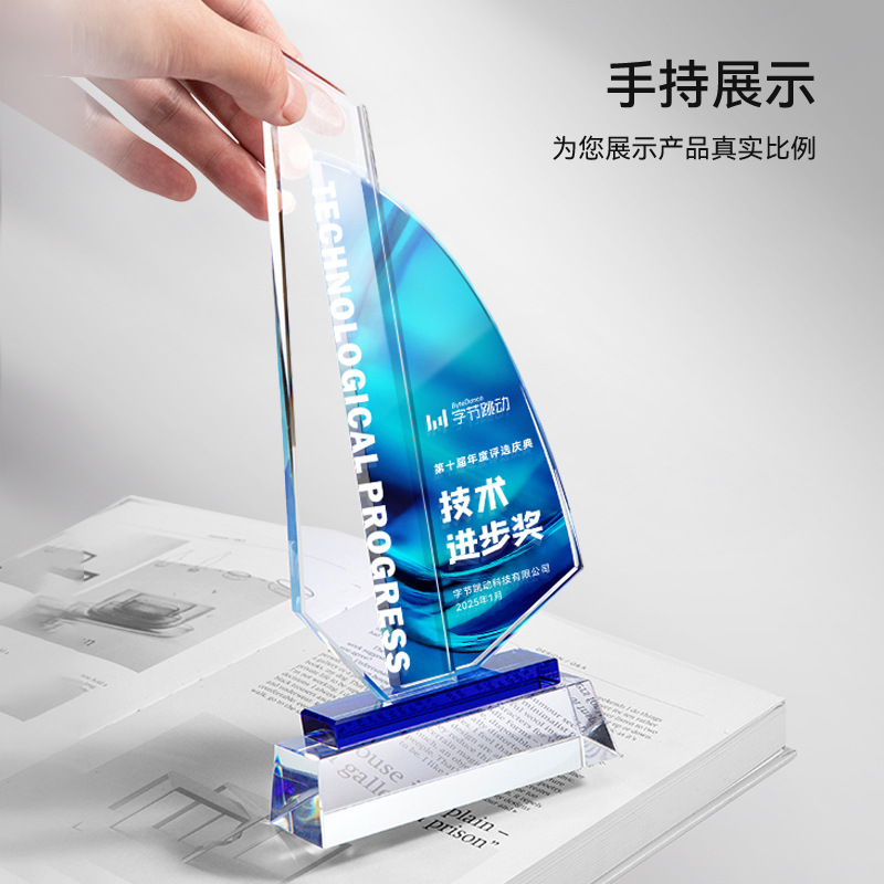 Хрустальный трофей в виде парусной лодки, выполненный на заказ, с креативным дизайном "Покоряйте ветер и волны", авторизованная табличка, сувенир для моряков, награда, почетная медаль.