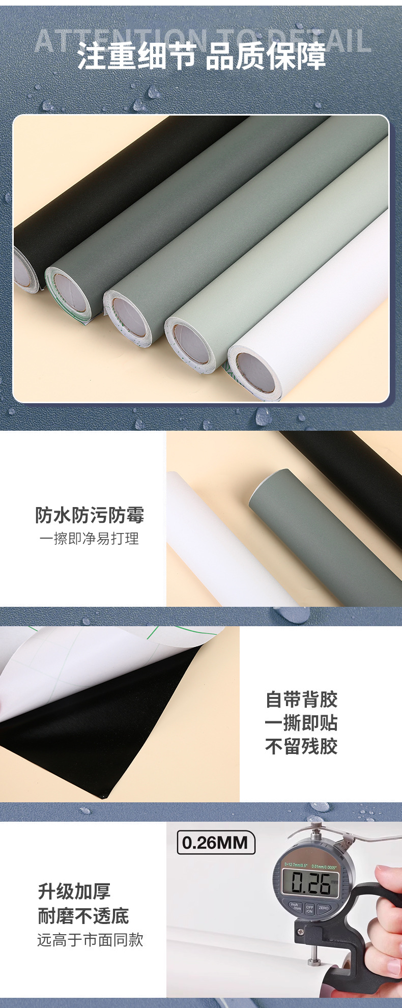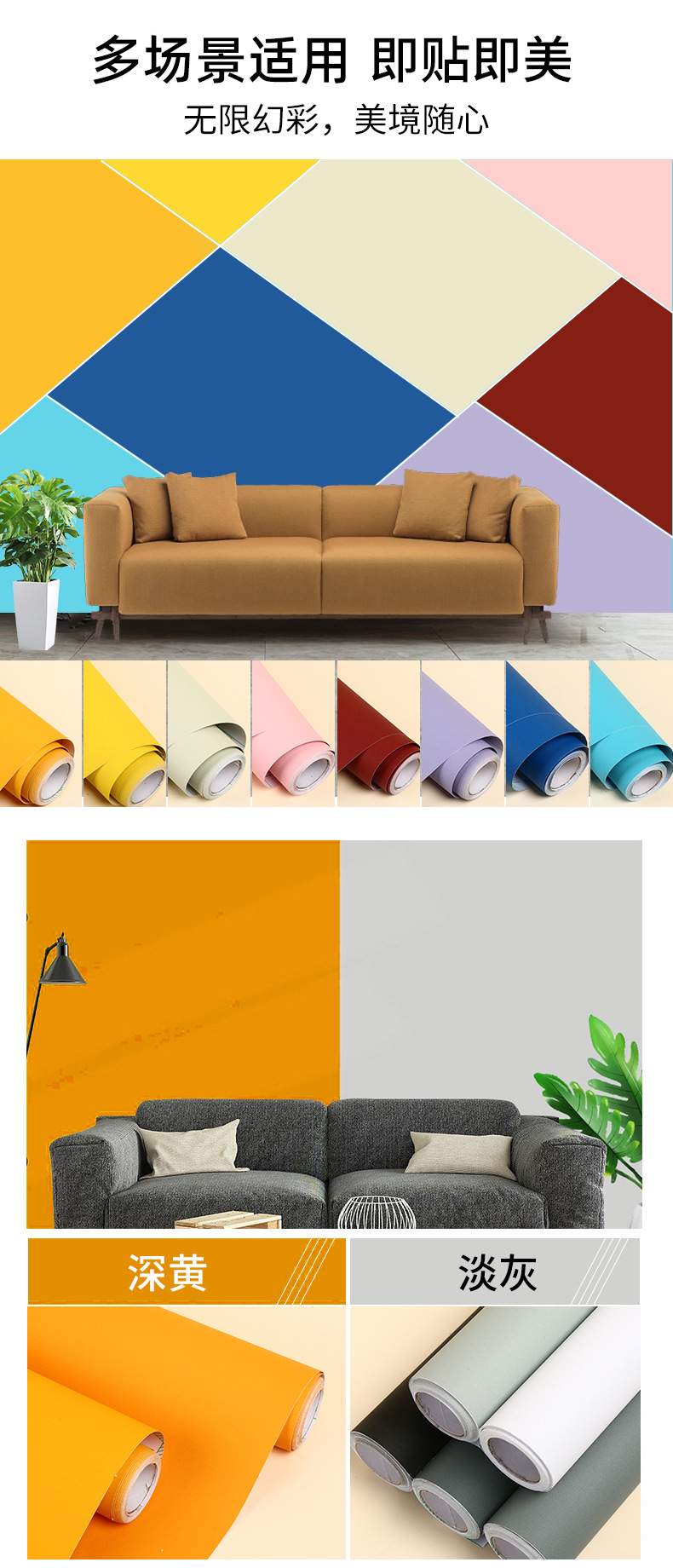 Однотонные самоклеящиеся обои с эффектом премиум-класса для спальни, гостиной, стены за телевизором, для арендной квартиры, ванной комнаты, с сильным клеевым слоем