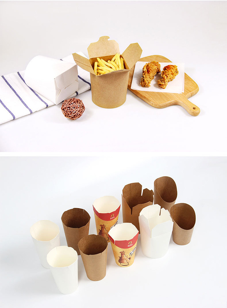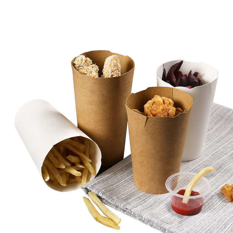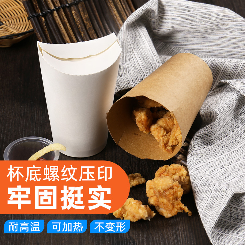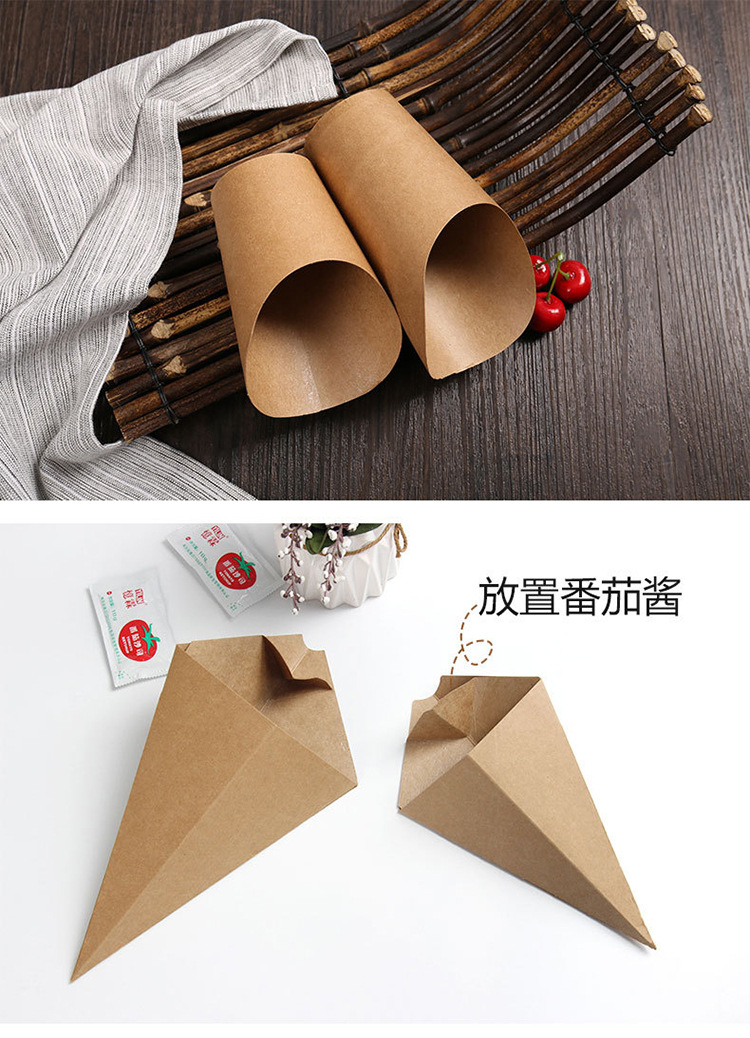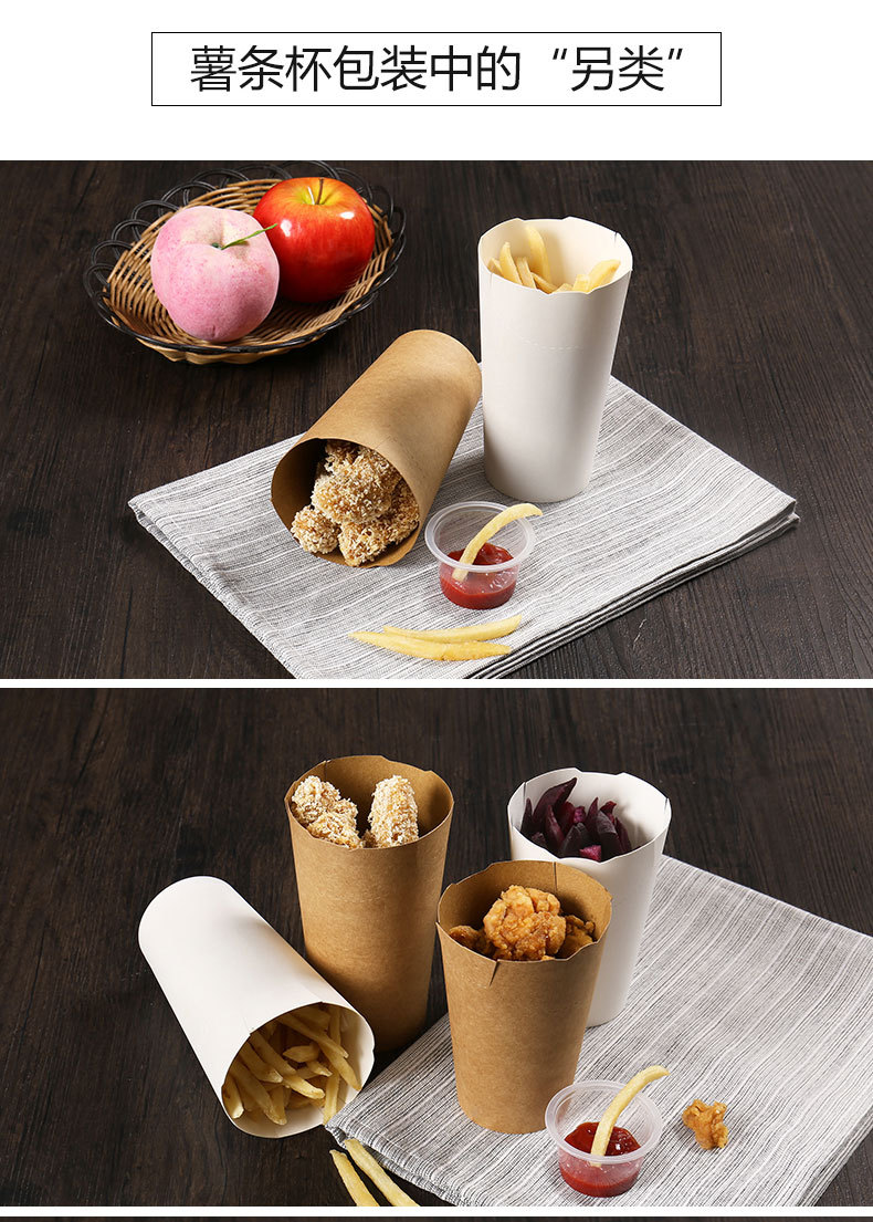 Пользовательские одноразовые крафт-бумажные чашки, чтобы запечатать картофельные полоски, белая карточка, коробка, коробка, коническая коробка, коробка, треугольная коробка, картофельные полоски