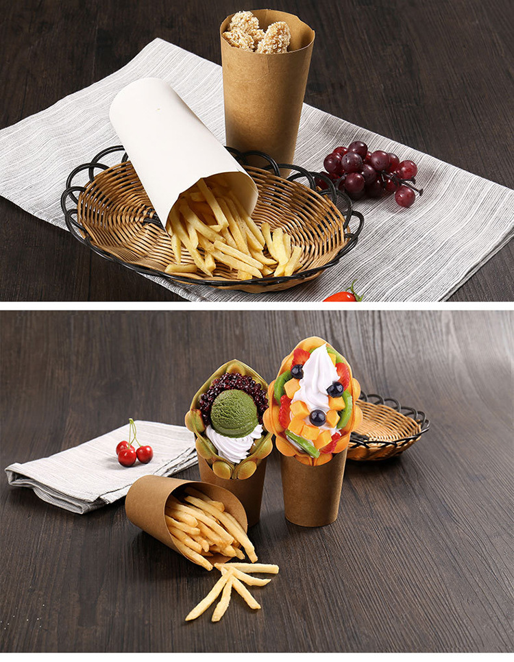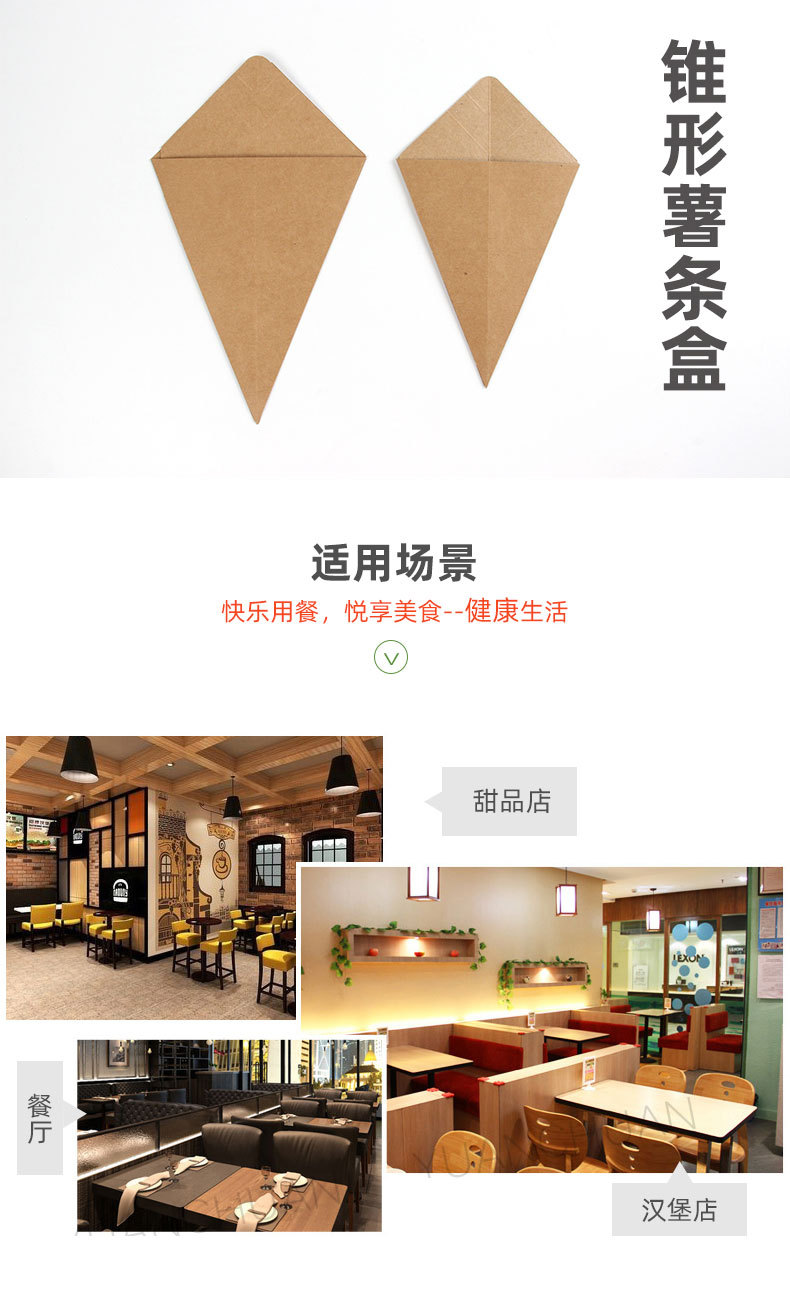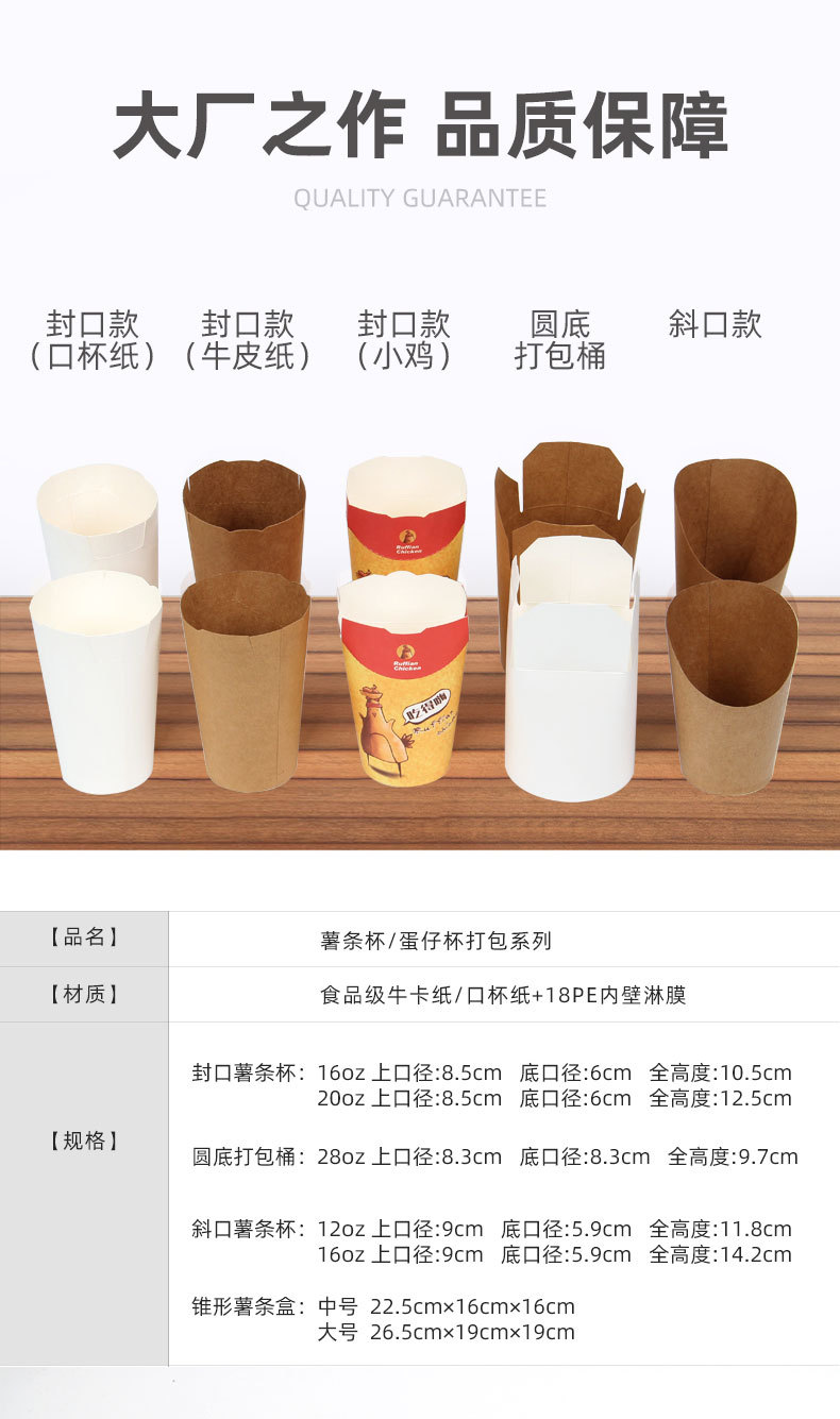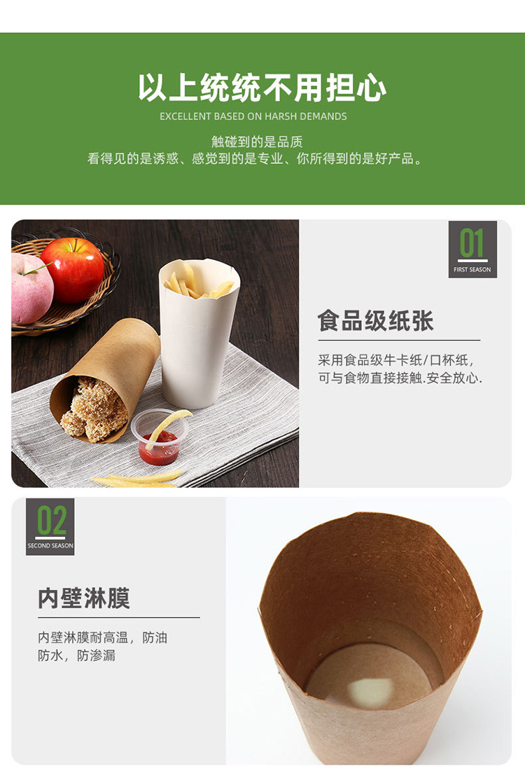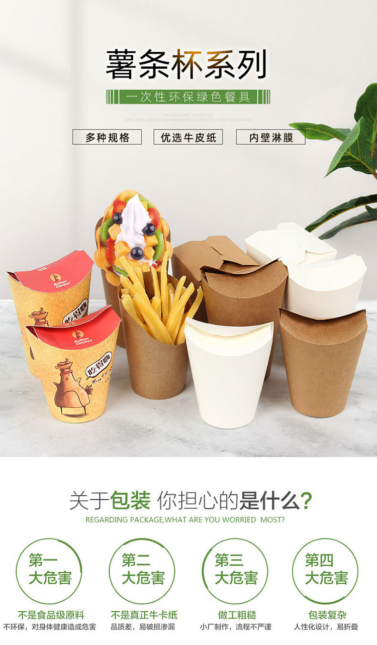 Пользовательские одноразовые крафт-бумажные чашки, чтобы запечатать картофельные полоски, белая карточка, коробка, коробка, коническая коробка, коробка, треугольная коробка, картофельные полоски