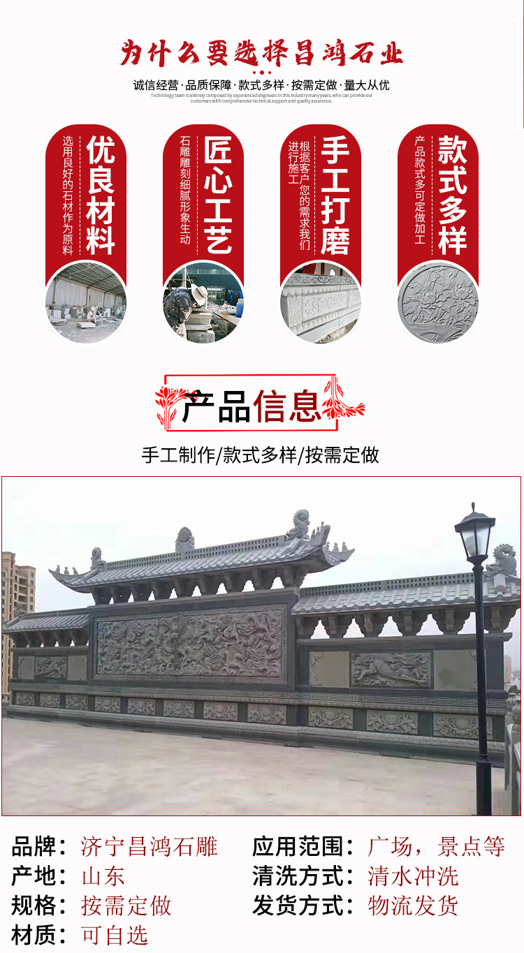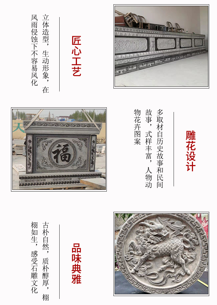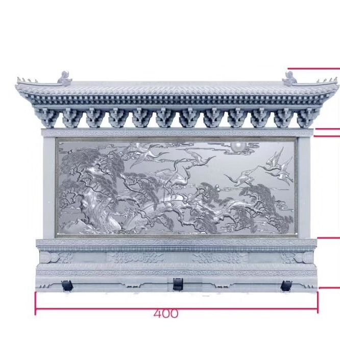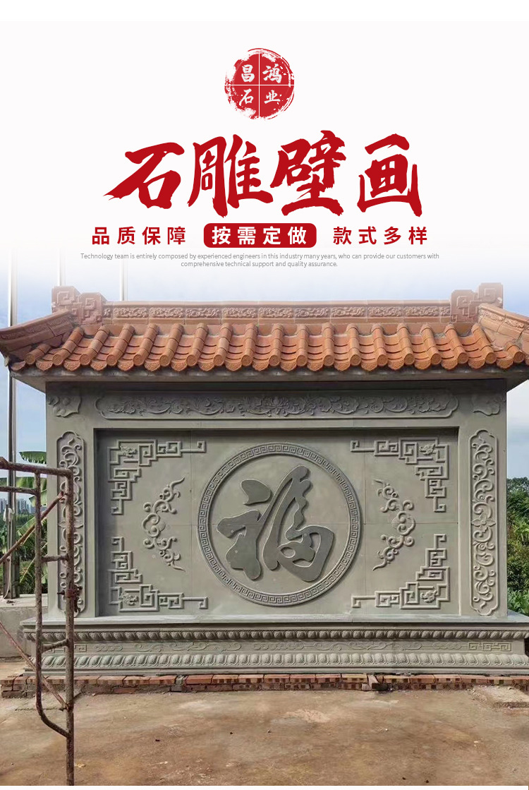Рельеф «Восемь бессмертных, пересекающих море на гранитной стене», рельефная резьба сливы, орхидеи, бамбука и хризантемы на голубой каменной стене, рельефная стена.