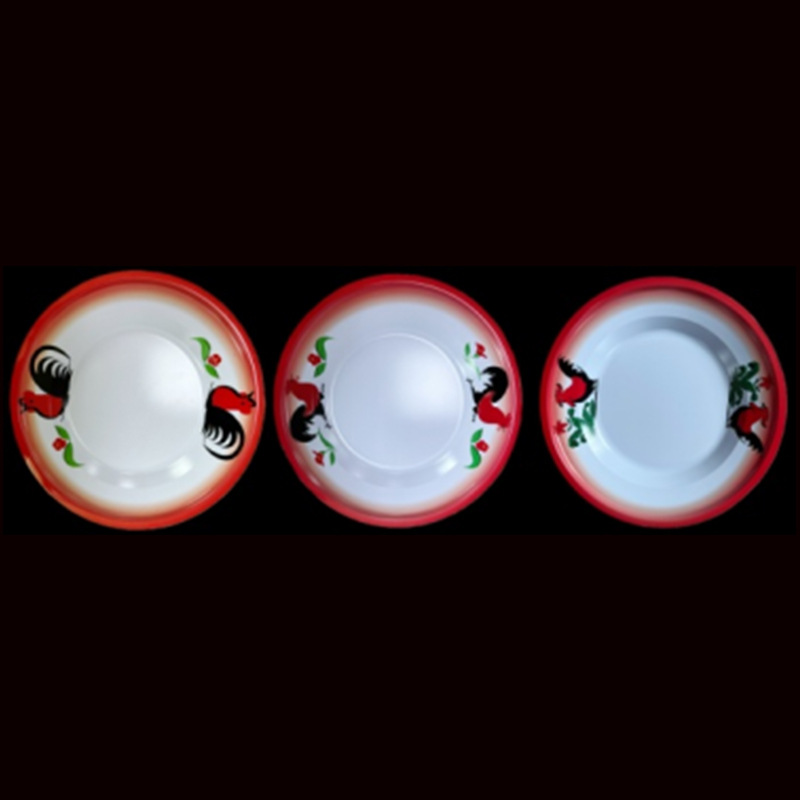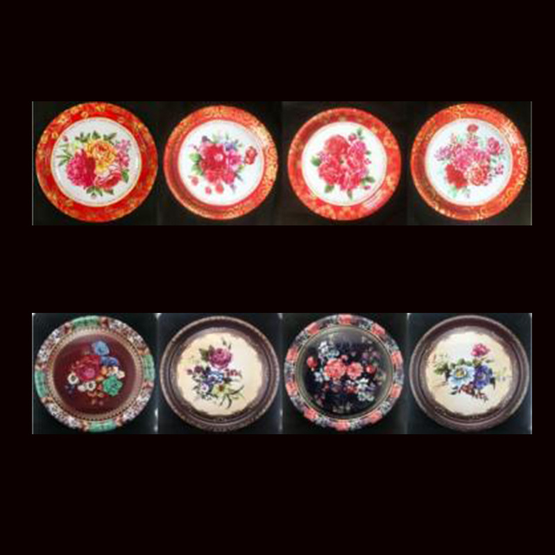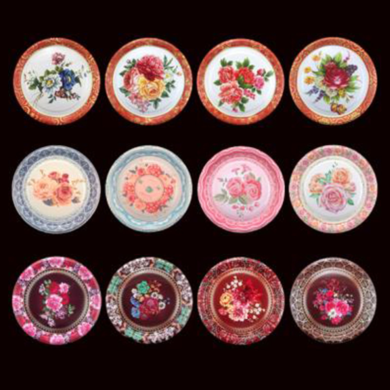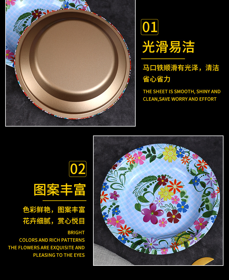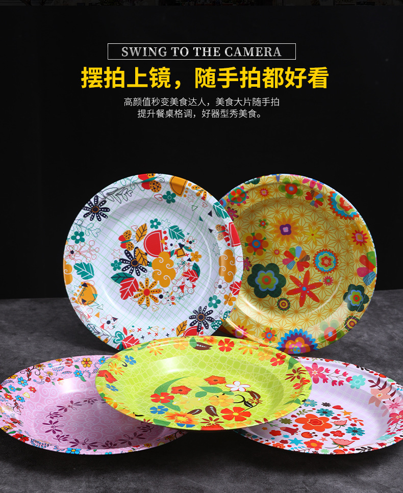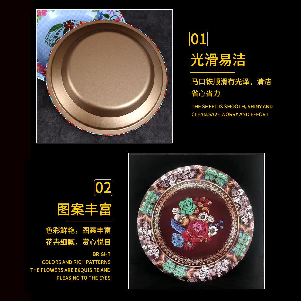 Производитель оптом Юго-Восточной Азии печатные железные тарелки цветные круглые жёстые тарелки ретро посуда