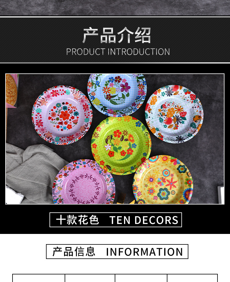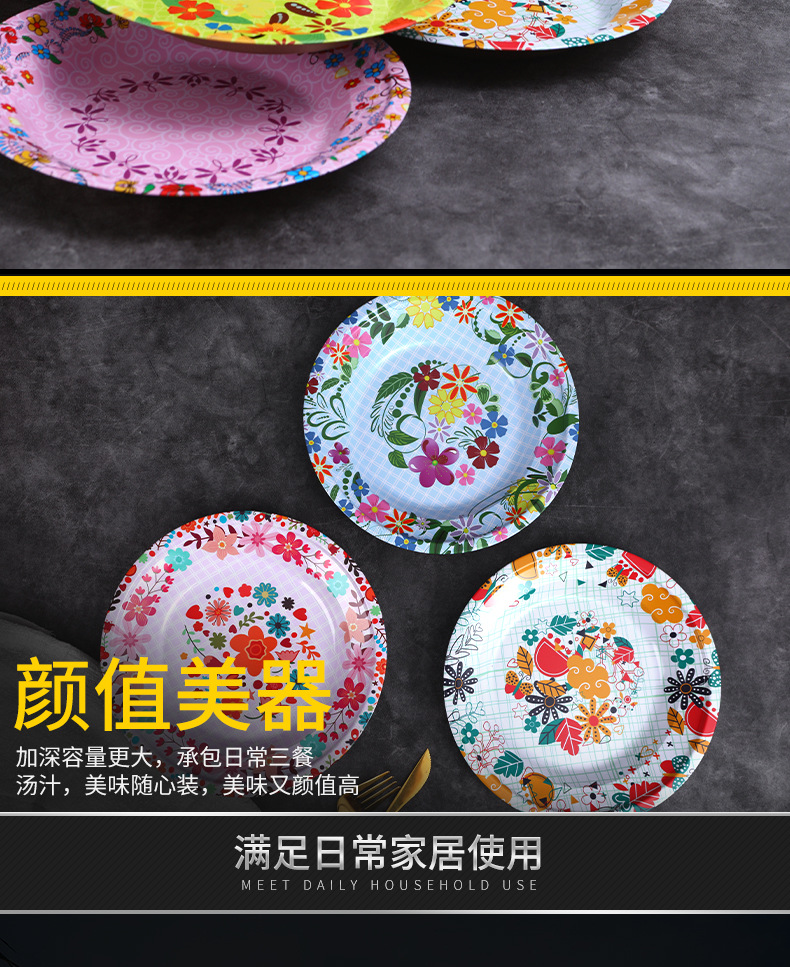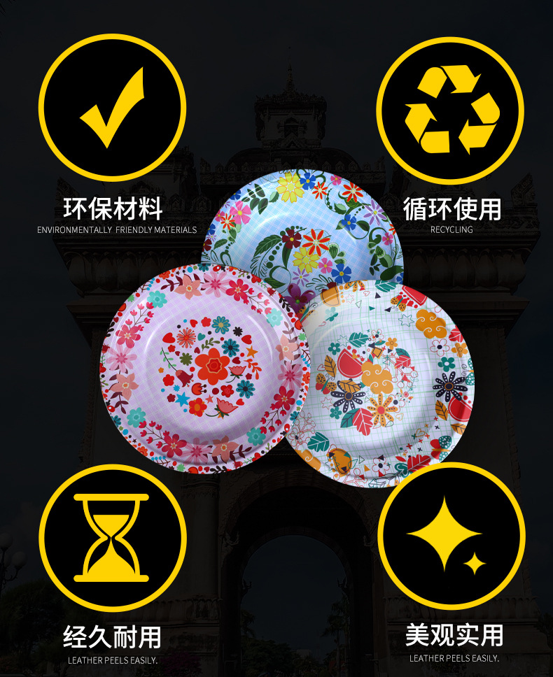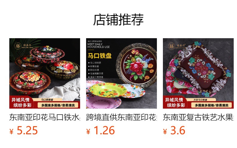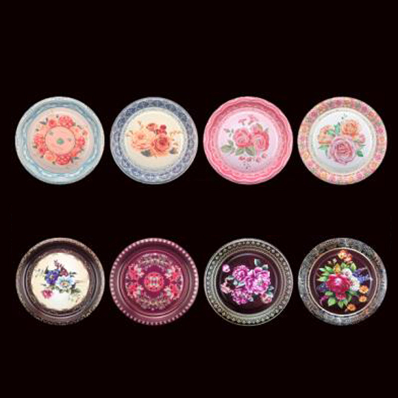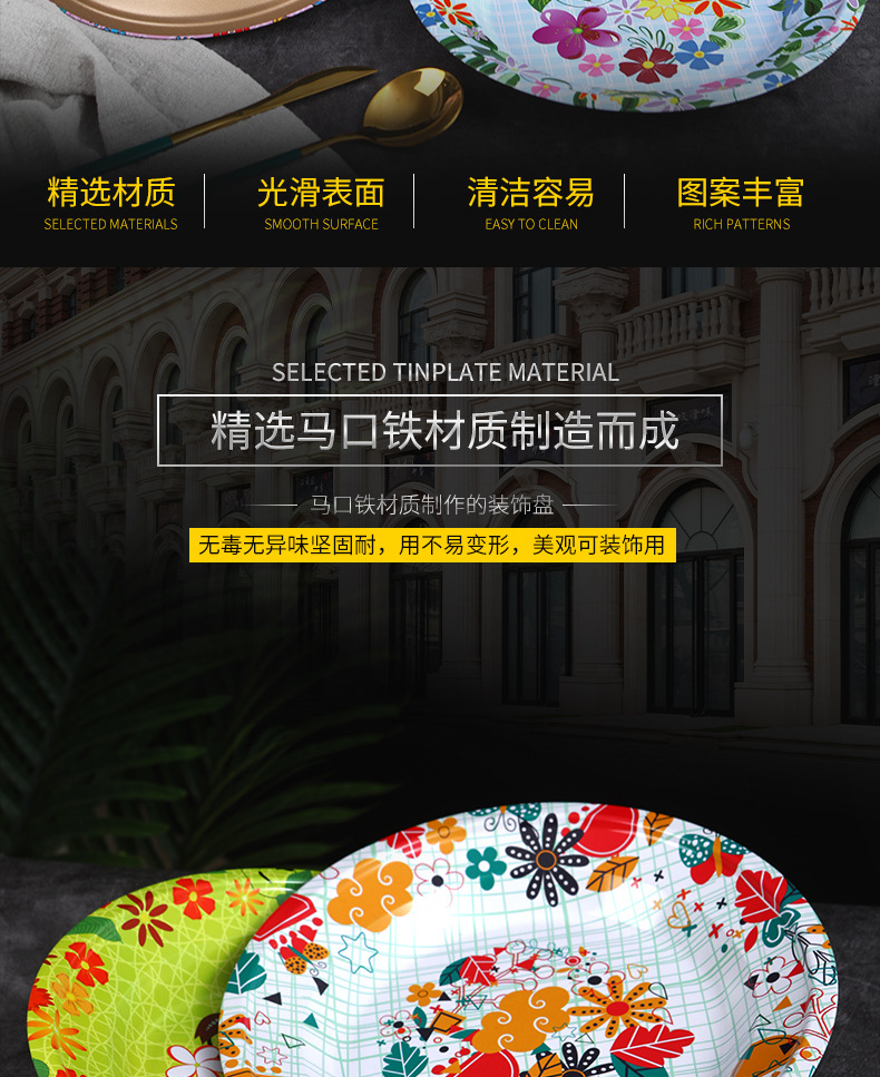 Производитель оптом Юго-Восточной Азии печатные железные тарелки цветные круглые жёстые тарелки ретро посуда