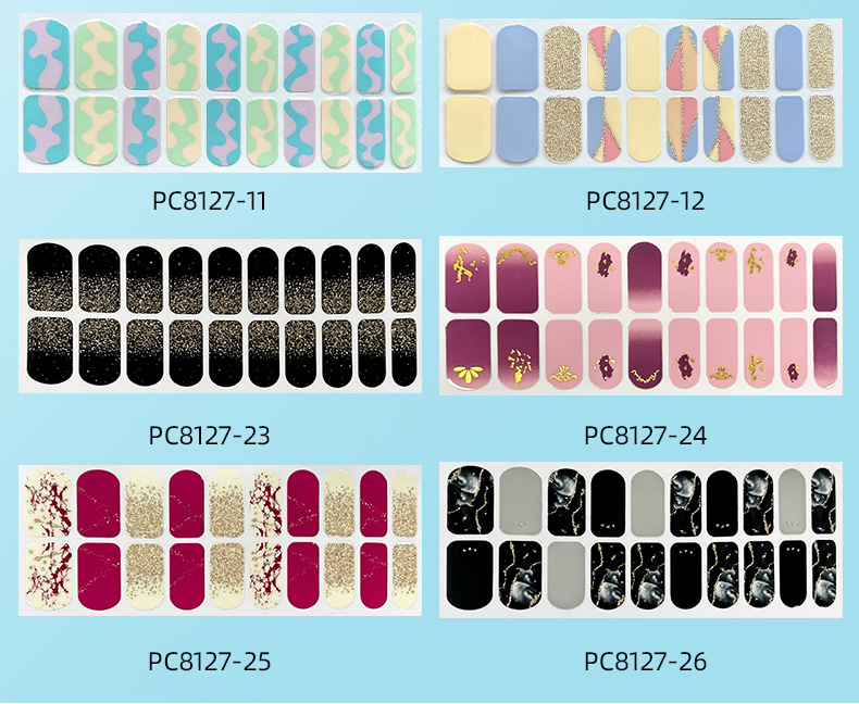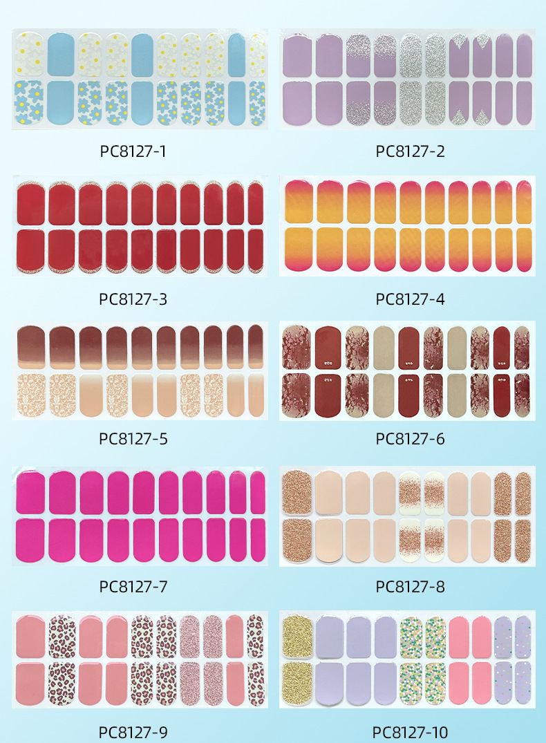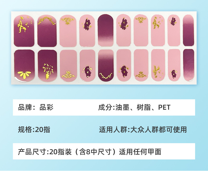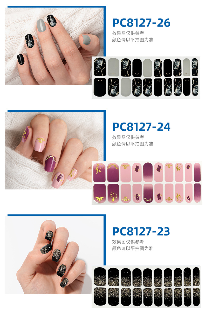 Двухрядные водонепроницаемые съемные наклейки для дизайна ногтей с 20 пальцами, простая французская пленка для лака для ногтей, блестящие популярные наклейки для ногтей ins