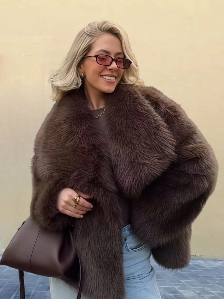 Европейский и американский новый стиль, меховая верхняя одежда с длинными рукавами и лацканами для женщин, весна 2025, новый универсальный кардиган чистого цвета, топ из искусственного меха