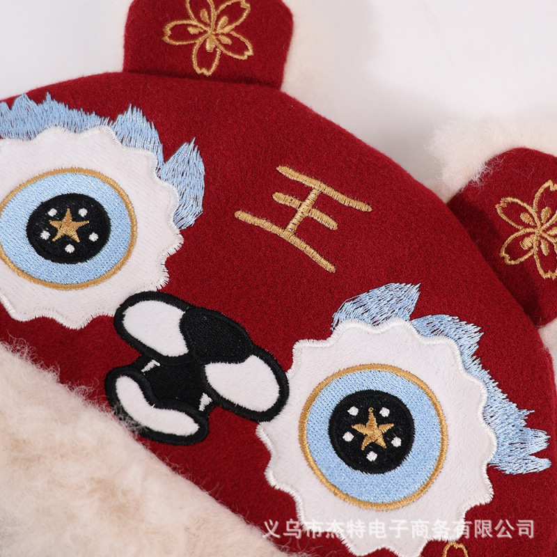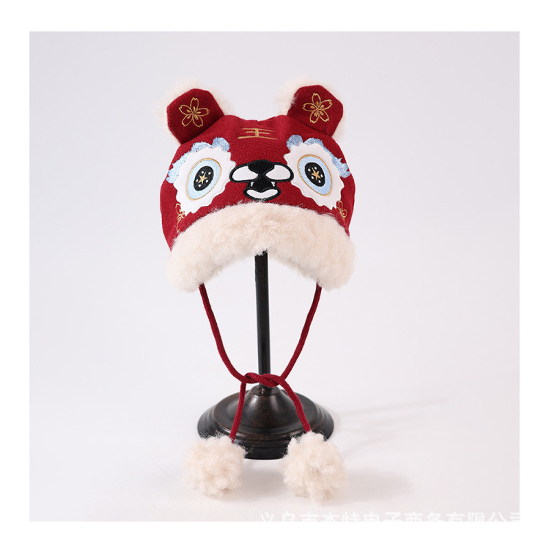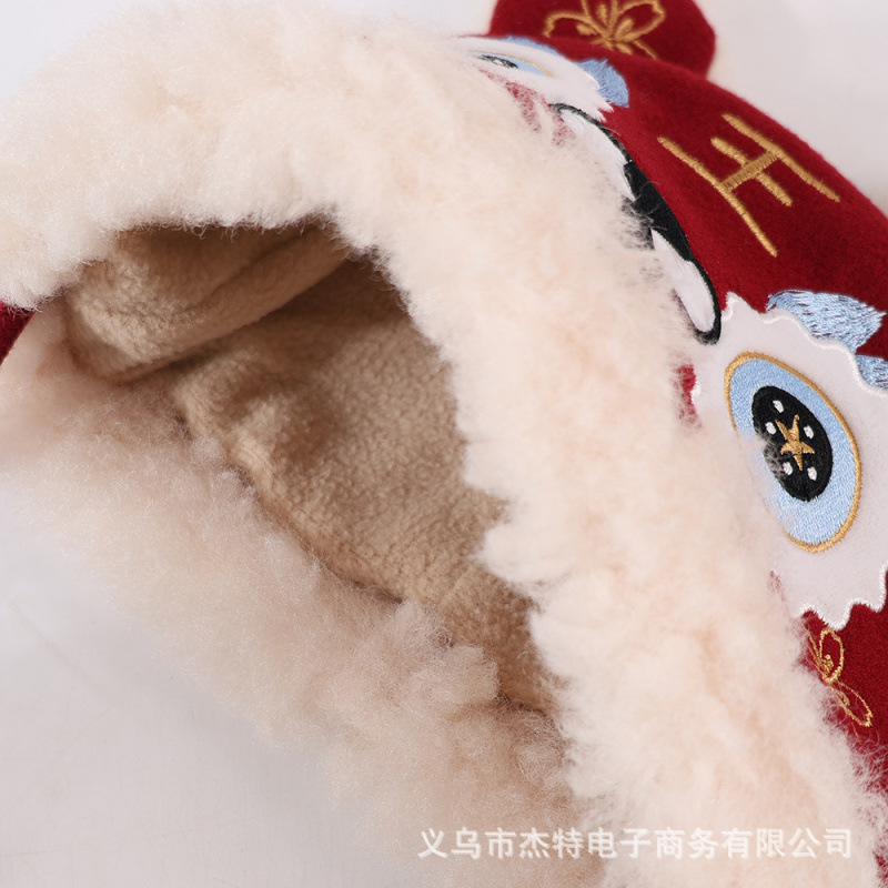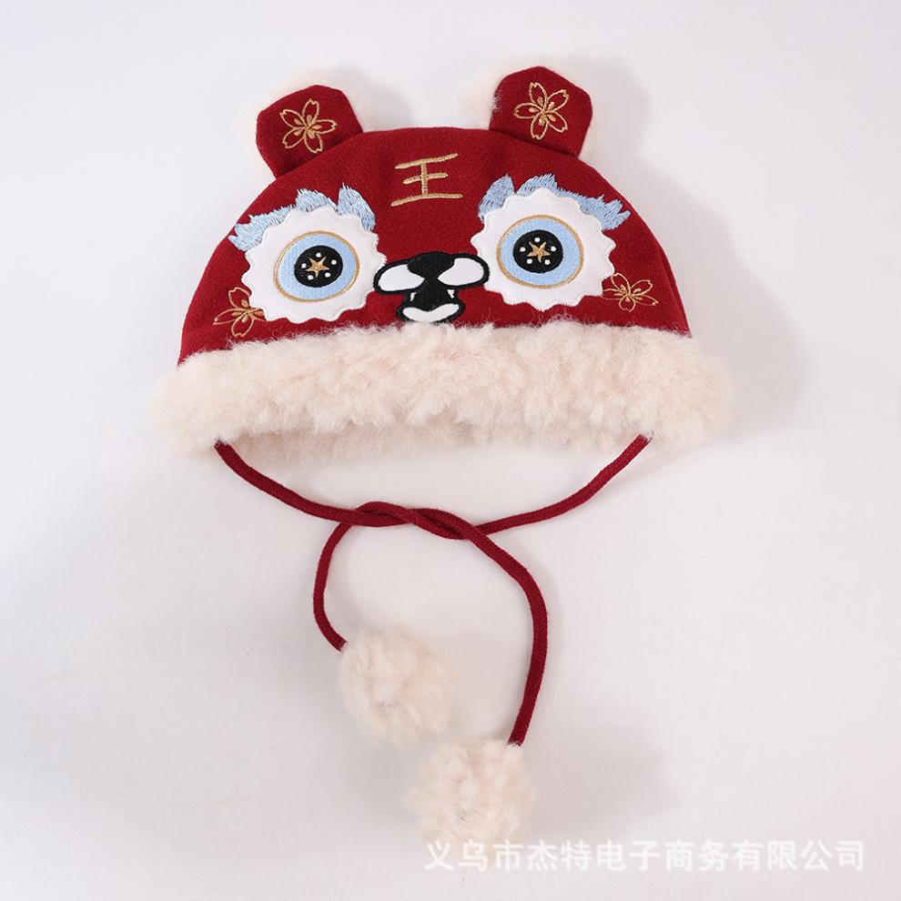 Шапка с головой тигра в китайском стиле, шерстяная осенне-зимняя теплая шапка для защиты ушей, новогодняя детская шапка, новогодняя семейная шапка с пробуждением льва