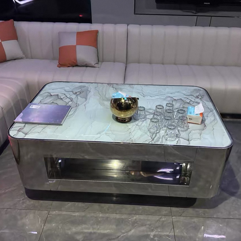 Элитный журнальный столик для караоке-клубов, баров, ночных клубов, залов для вечеринок, частных кабин, специальный журнальный столик для караоке-клубов из нержавеющей стали с каменной столешницей