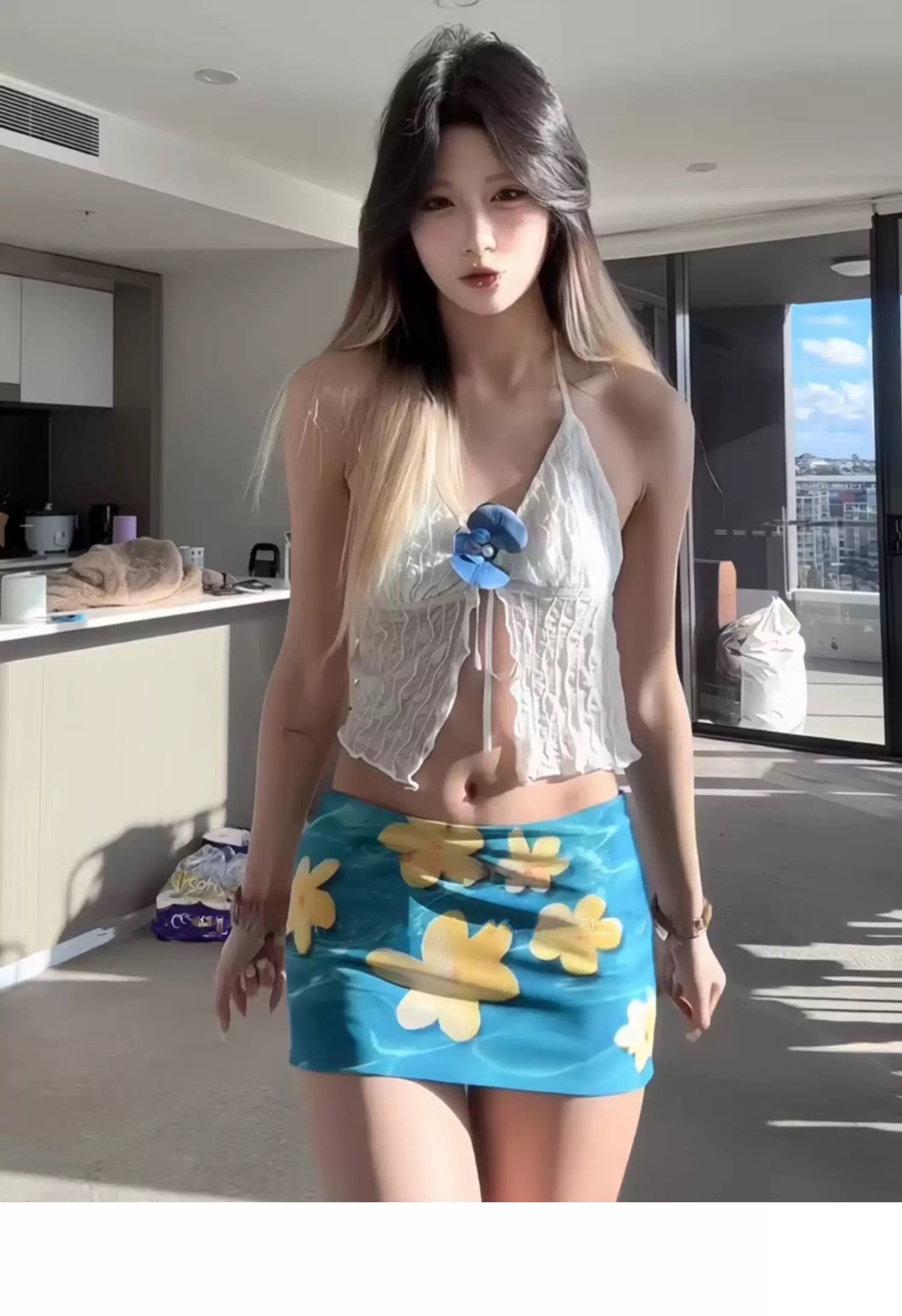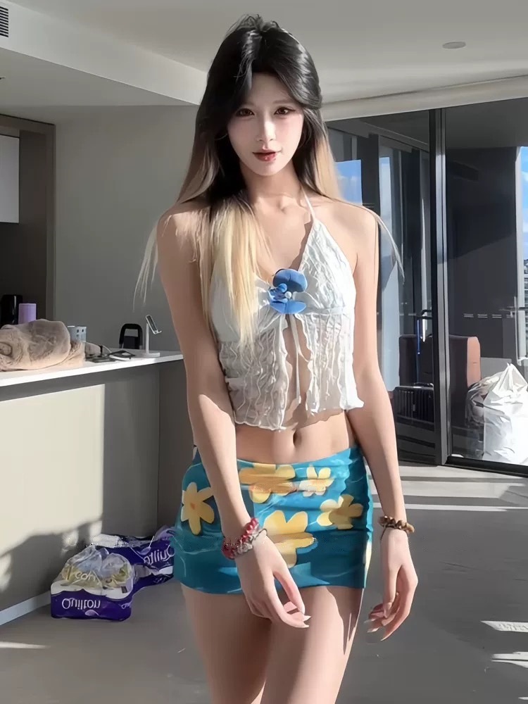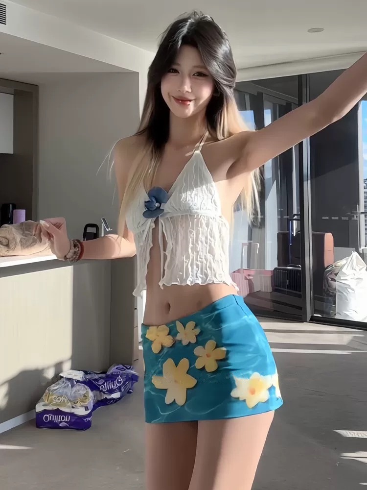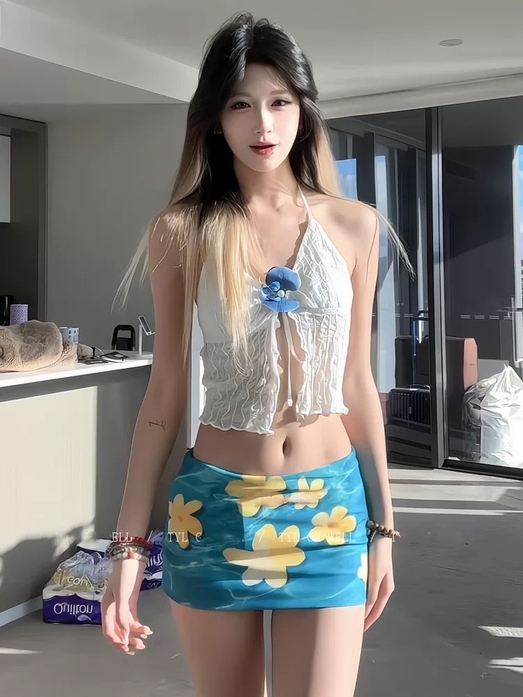 Комплект купальника + синие цветы; отдельные синие цветы; независимая юбка
