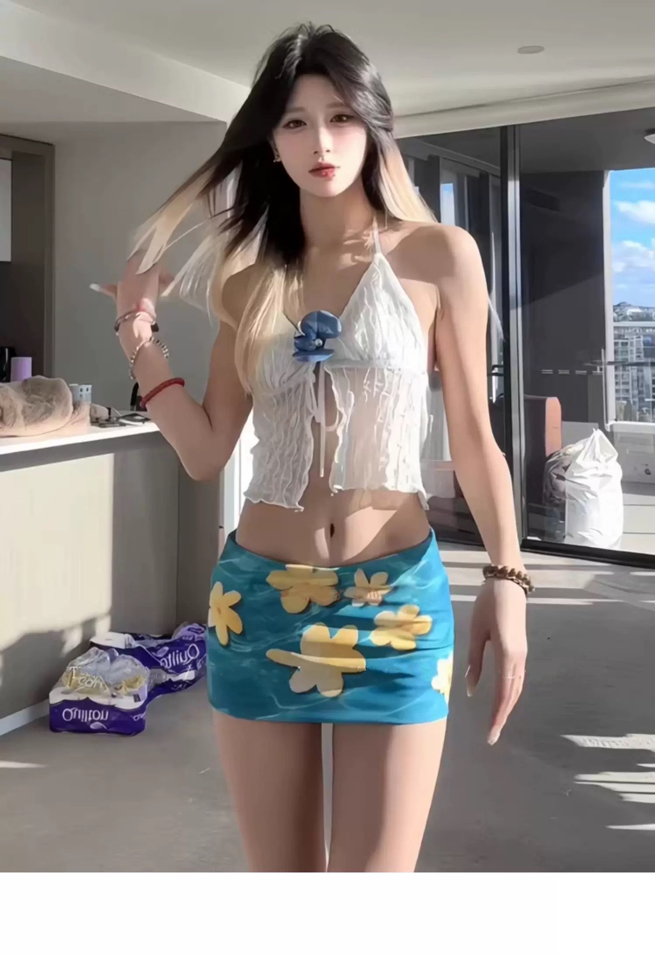 Чистый ветер трехмерный цветочный V-образный кружевной жилетный жилет женская летняя горячая девушка короткая сексуальная пупочная подтяжка
